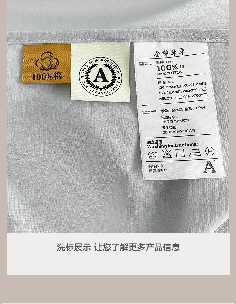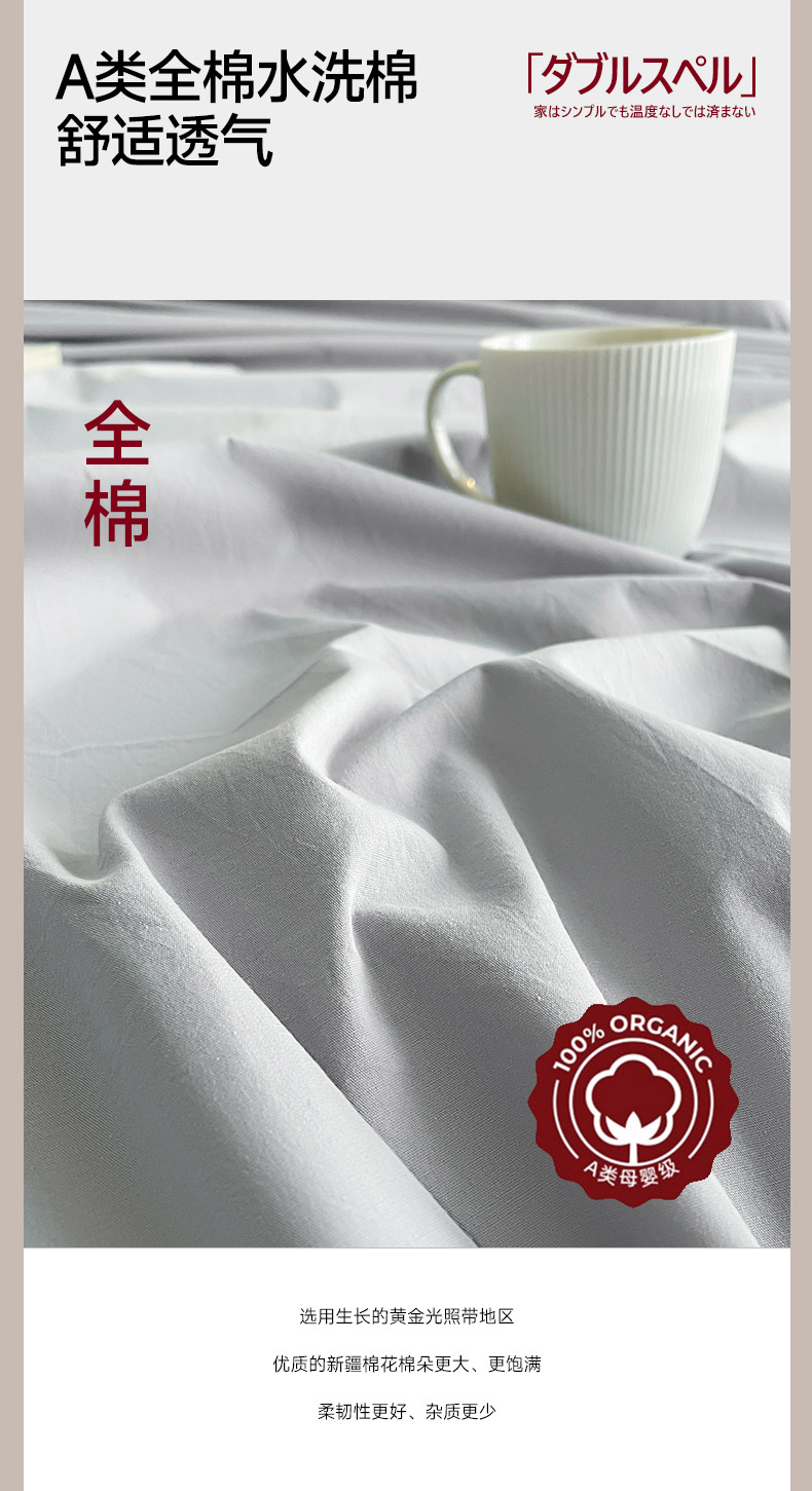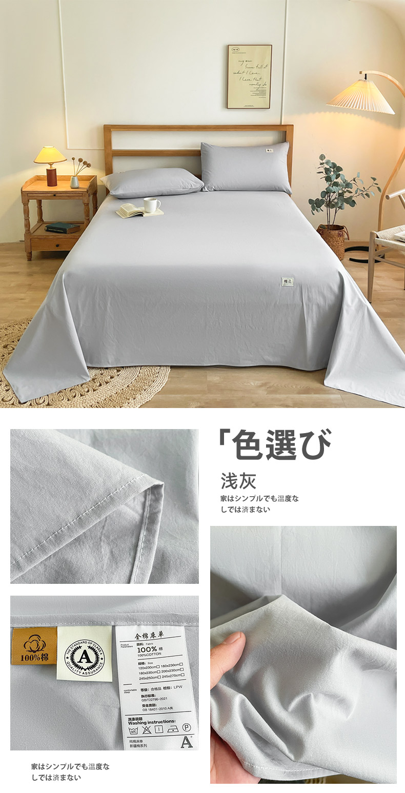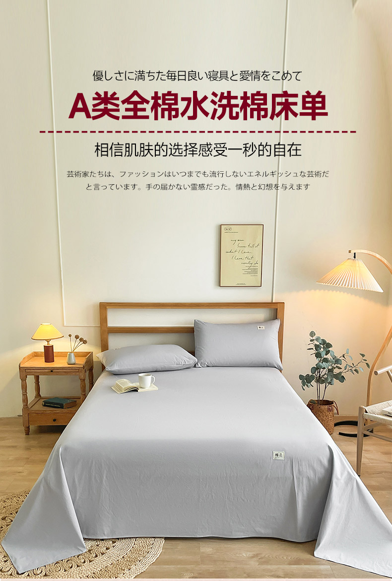 商品名称:暖芯优选 2025新款40S13376纯色全棉水洗棉单品系列床单单件-单床单 浅灰
