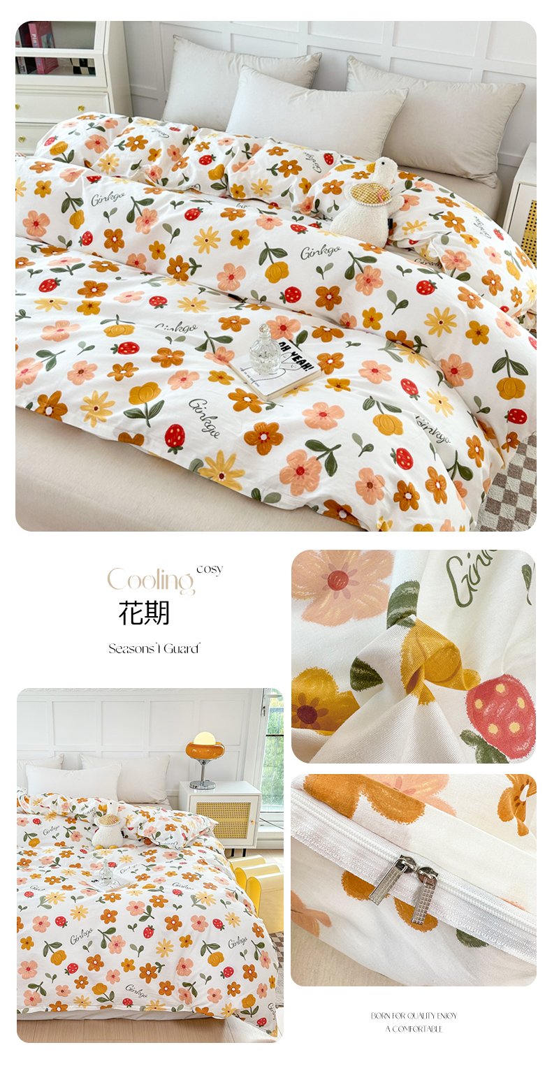 小叮当家纺仓储工厂店 (爆款花型 长期款 不断货)2025年新款小清新印花条纹卡通花卉纯棉全棉单品系列--单被套 国色添香