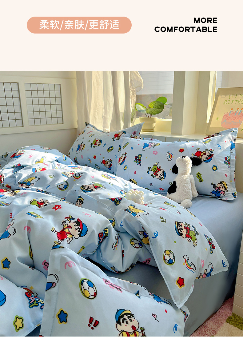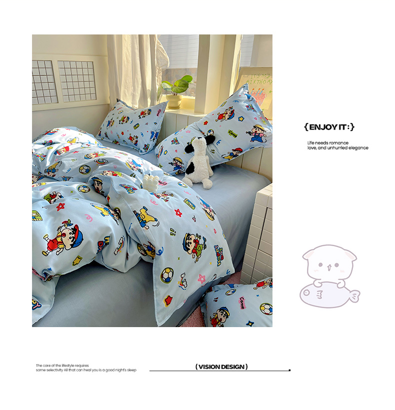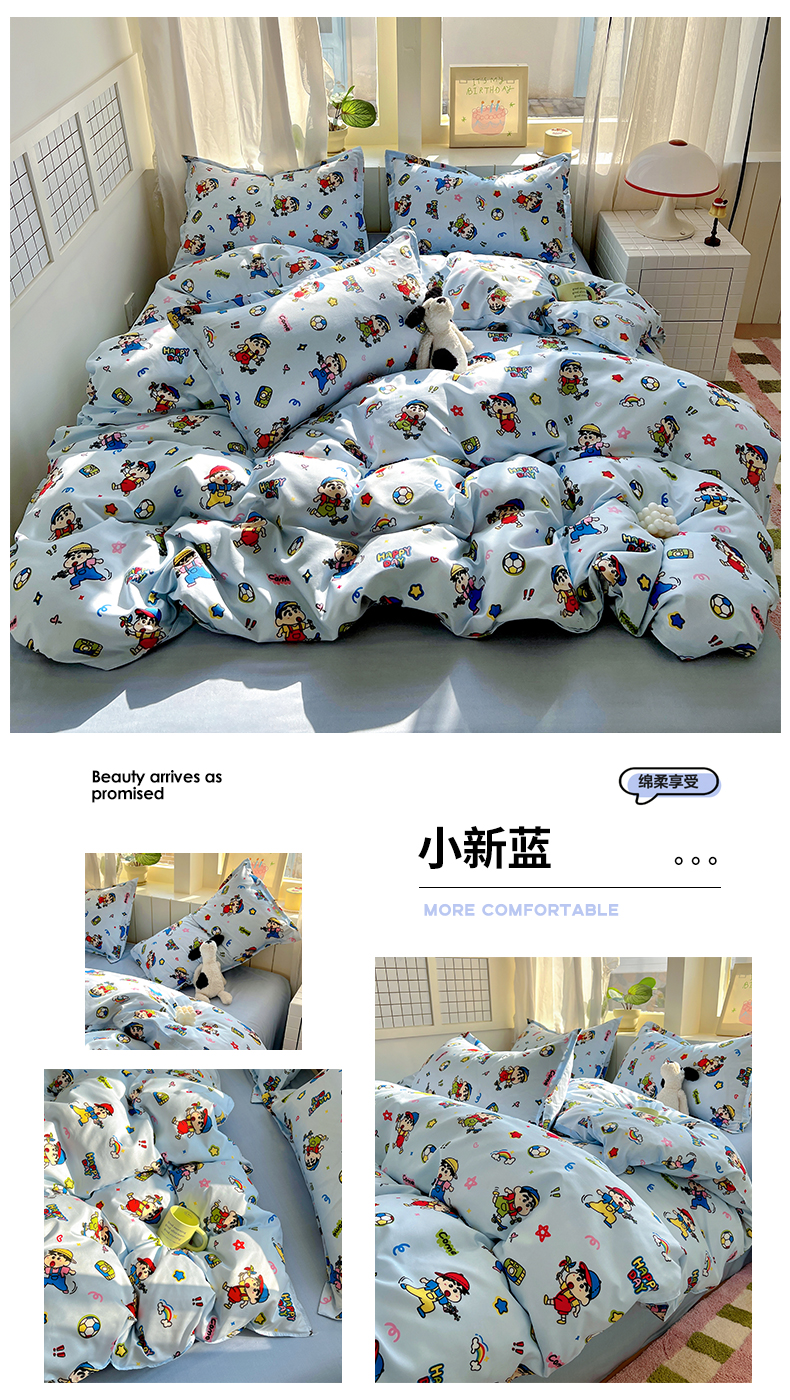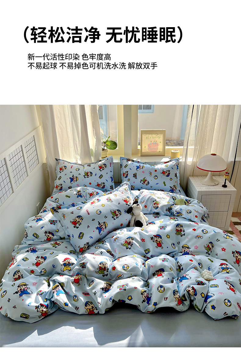 商品名称:宏源家纺 2025新款芦荟棉印花亲肤四件套 小新蓝