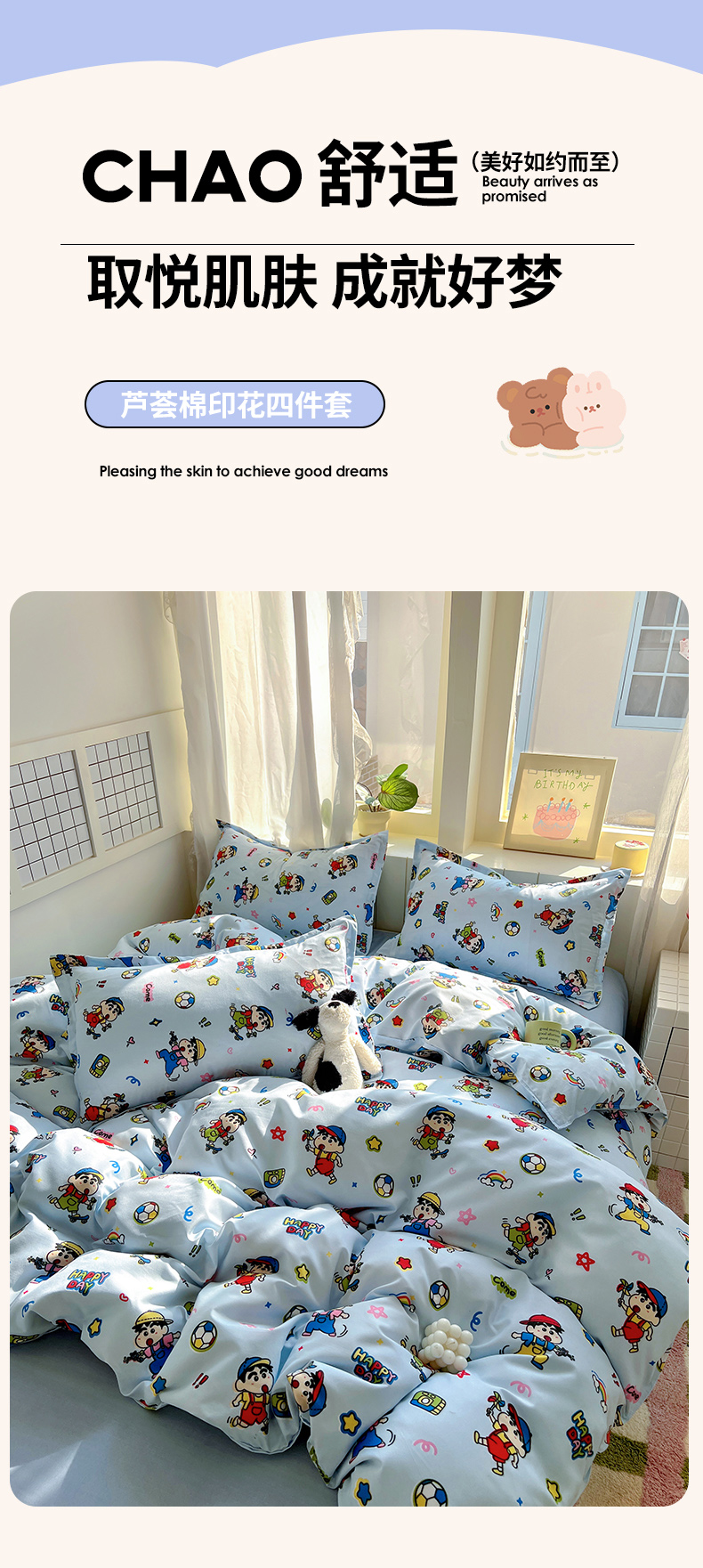(总)宏源家纺 2025新款芦荟棉印花亲肤四件套,花园熊,快乐玩伴,萌萌猫粉,萌萌猫灰,甜品派对-蓝,甜品派对-玉,小猫日记,小新灰,小新蓝,熊仔仔