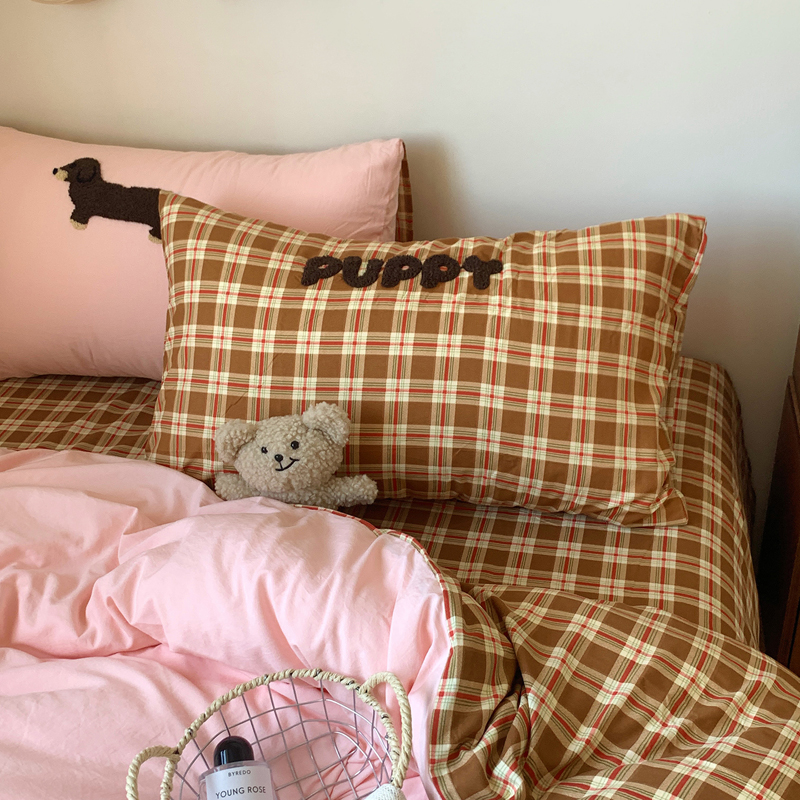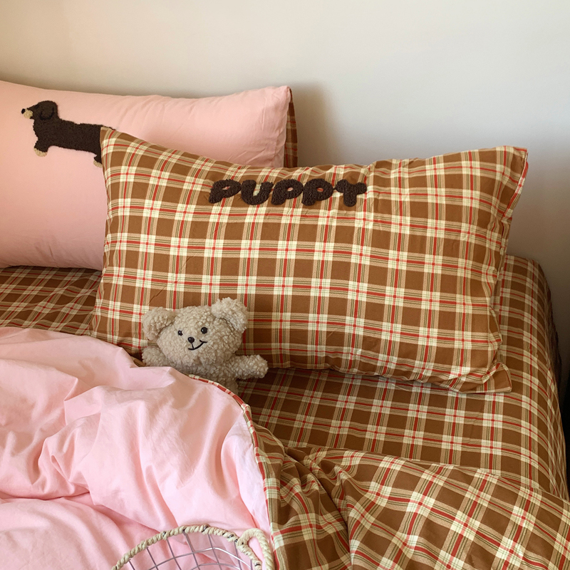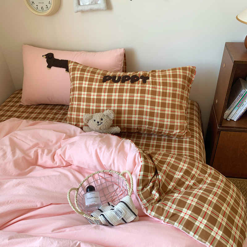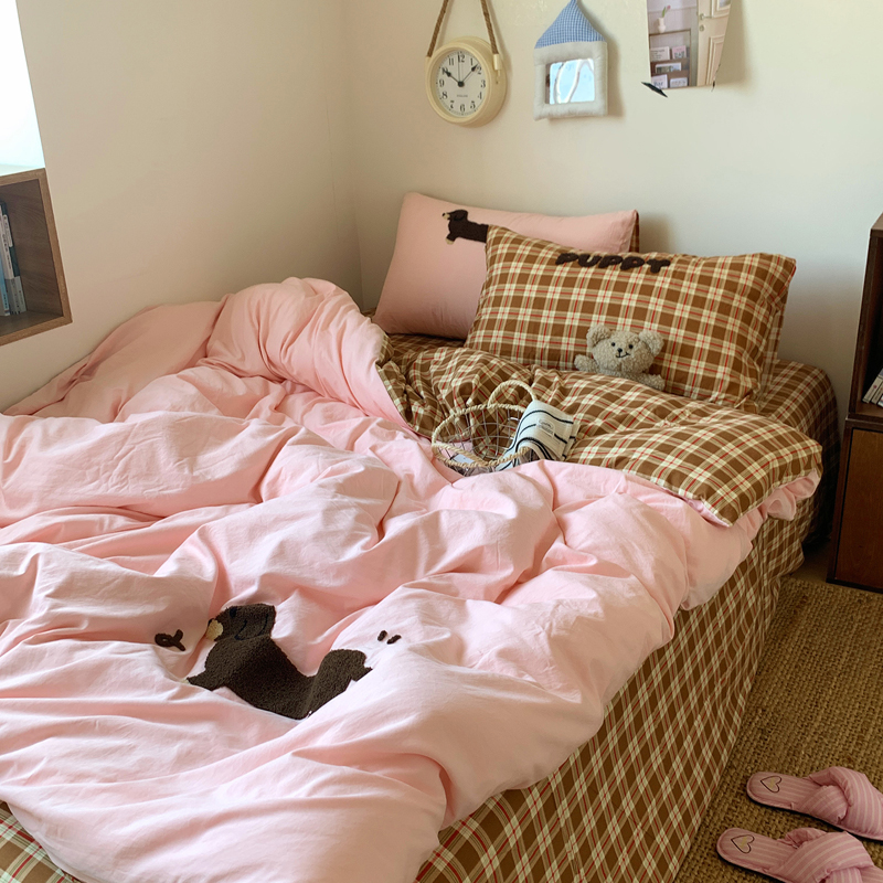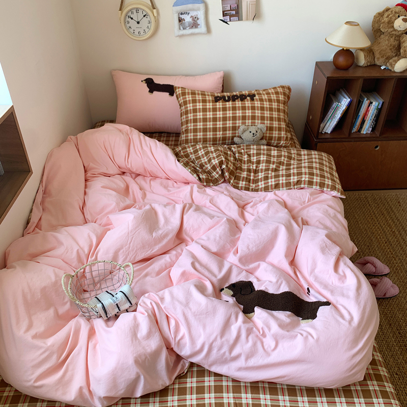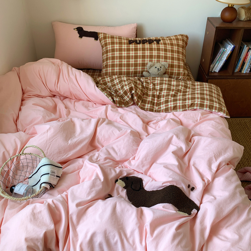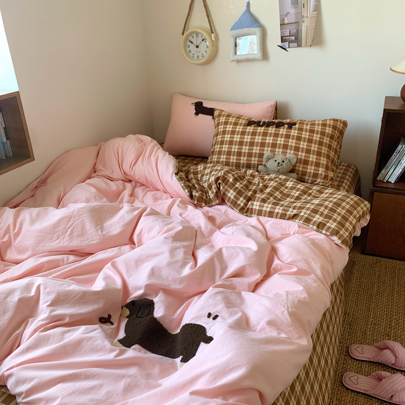 当前位置: 91家纺网 > 商品网购 > 床品套件 > 四件套 > 水洗棉四件套 > 桃喜 2025新款韩系卡通水洗棉毛巾绣四件套 粉色腊肠狗