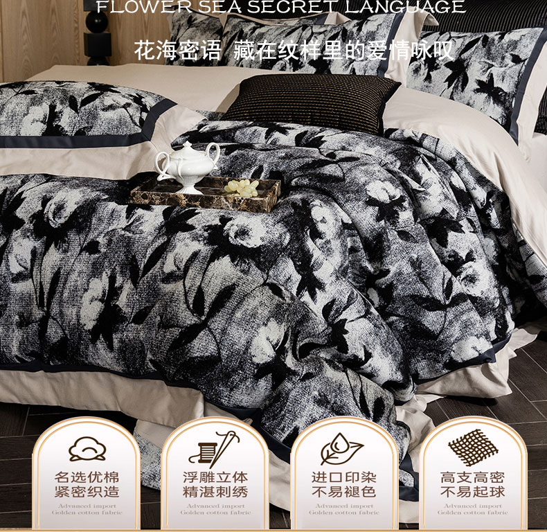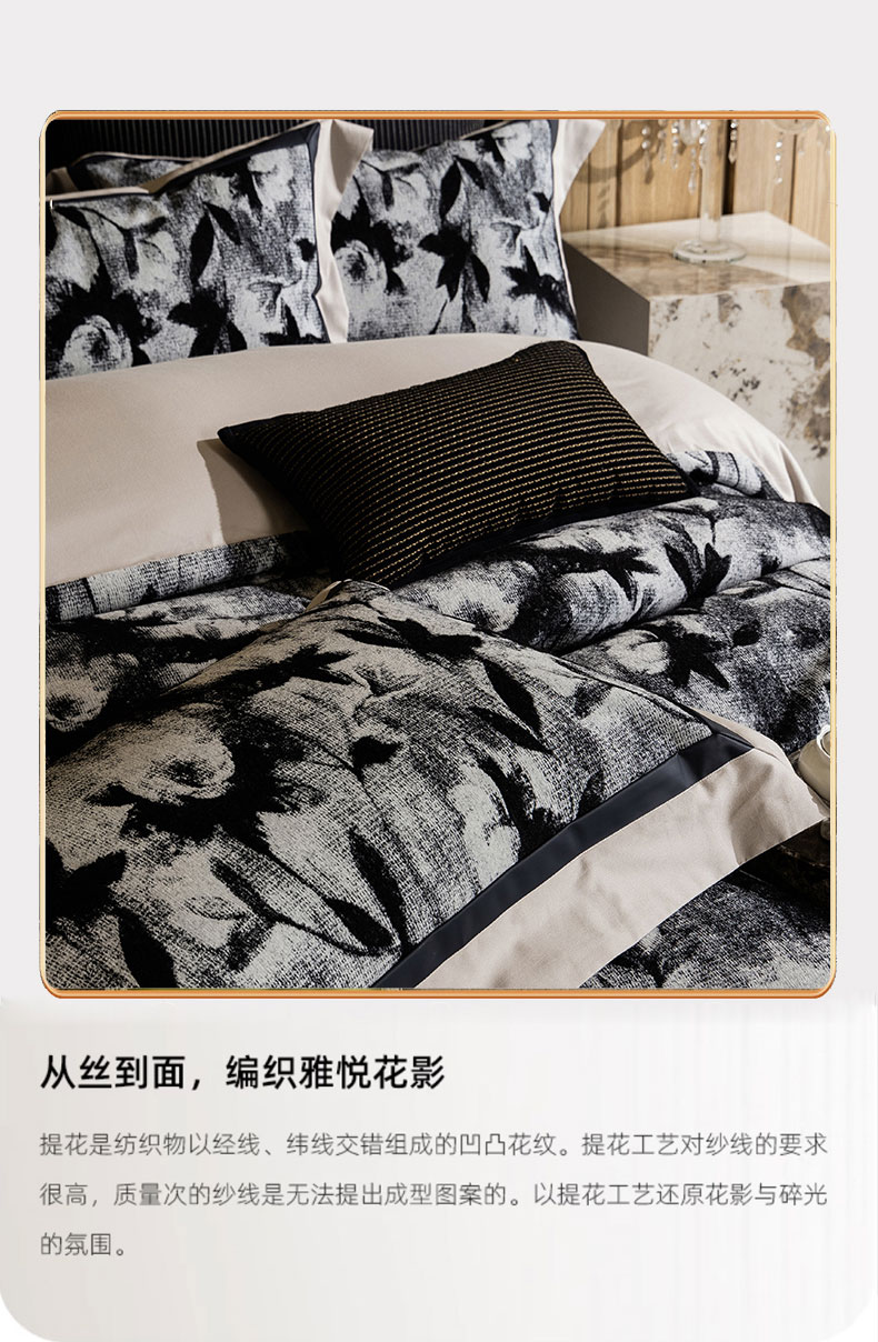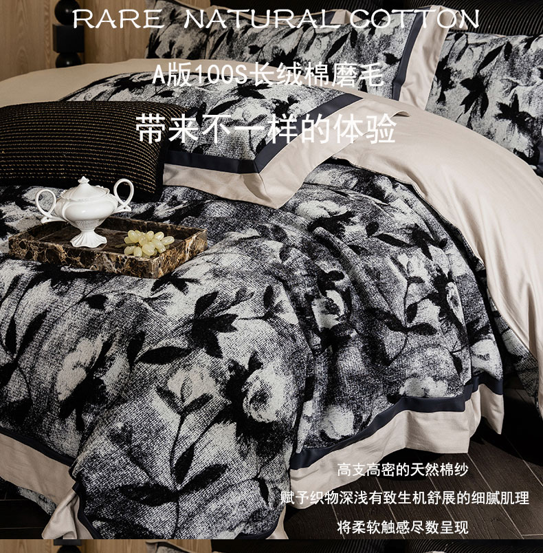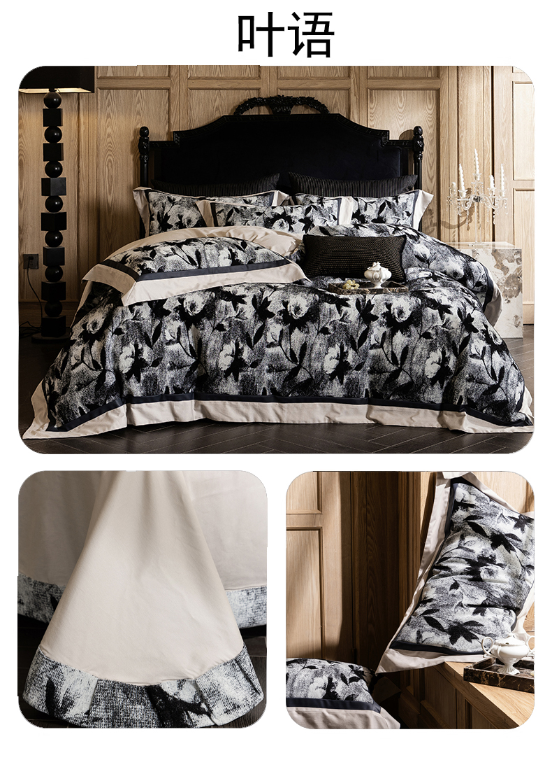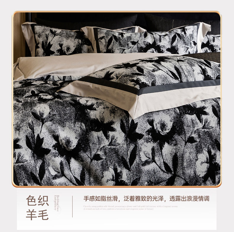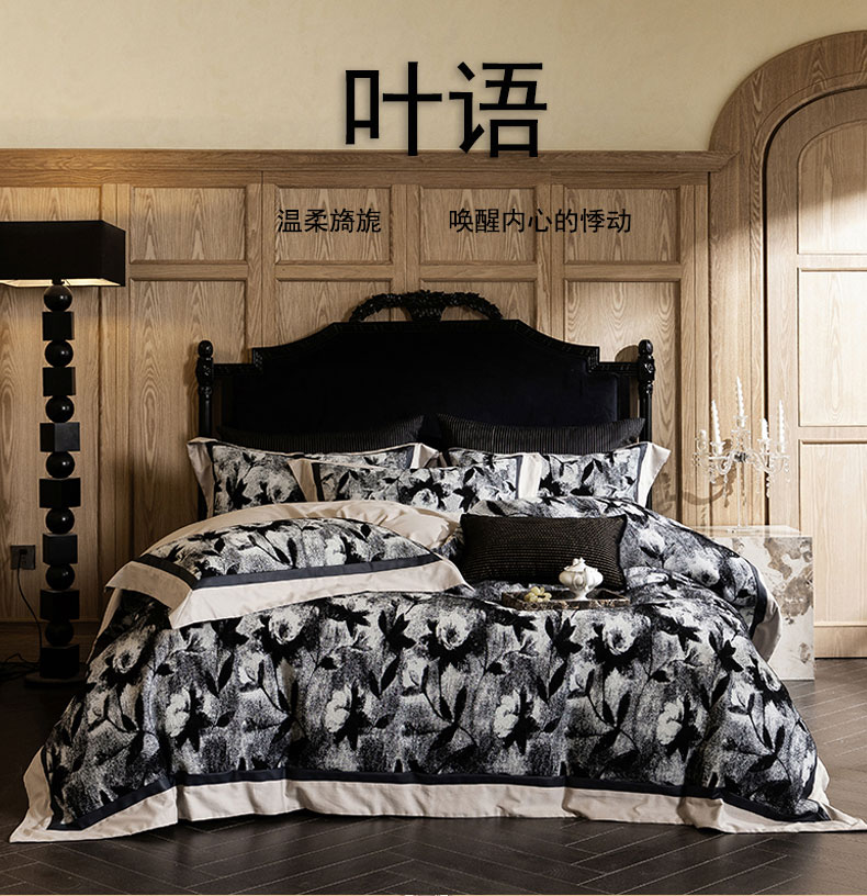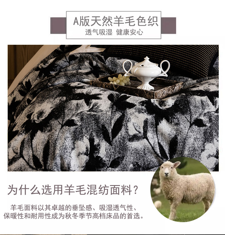 商品名称:蒂爵 2025新款A版羊毛混纺、b版新疆长绒棉时尚秋冬四件套-叶雨 叶雨-黑