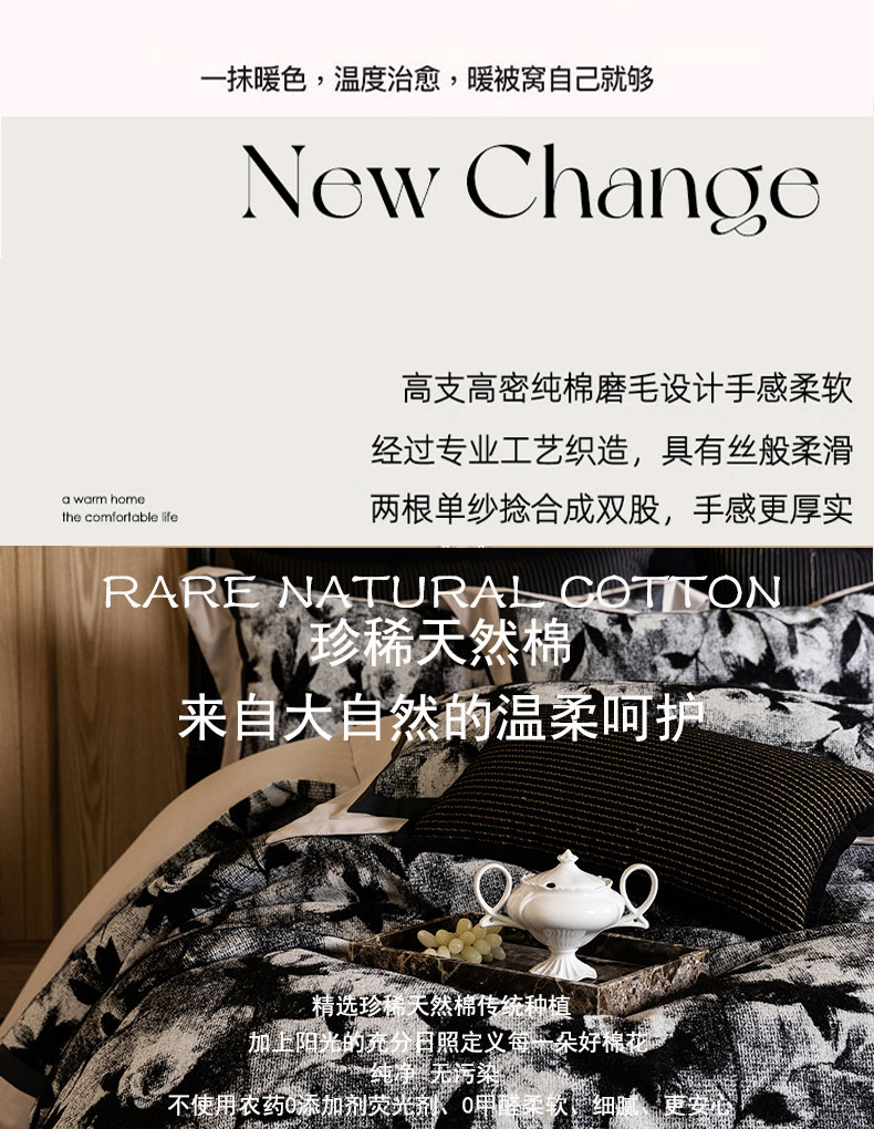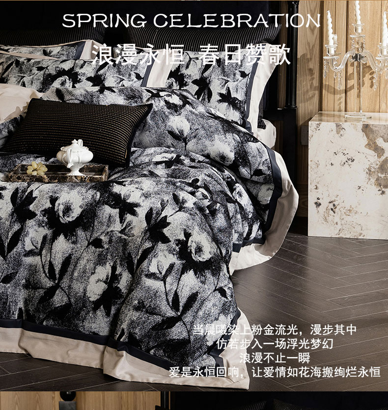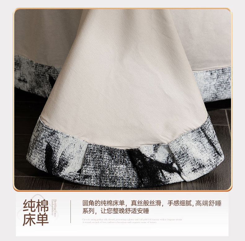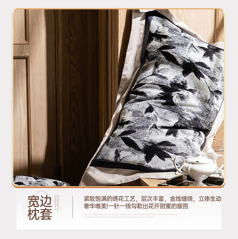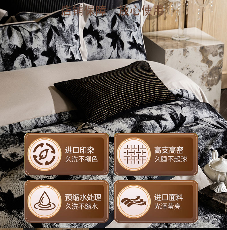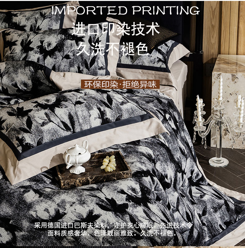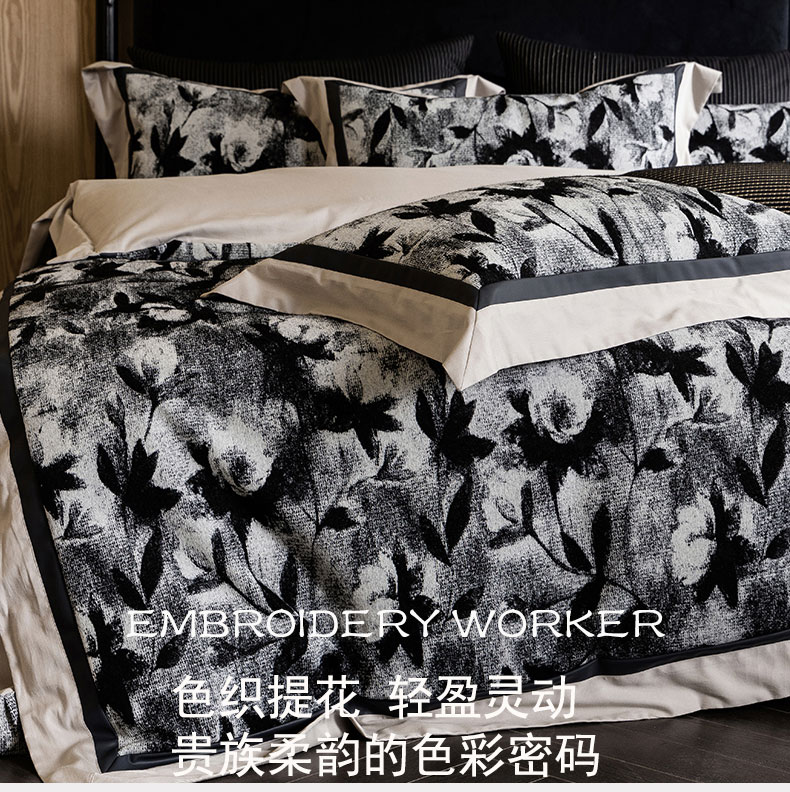 商品名称:蒂爵 2025新款A版羊毛混纺、b版新疆长绒棉时尚秋冬四件套-叶雨 叶雨-黑