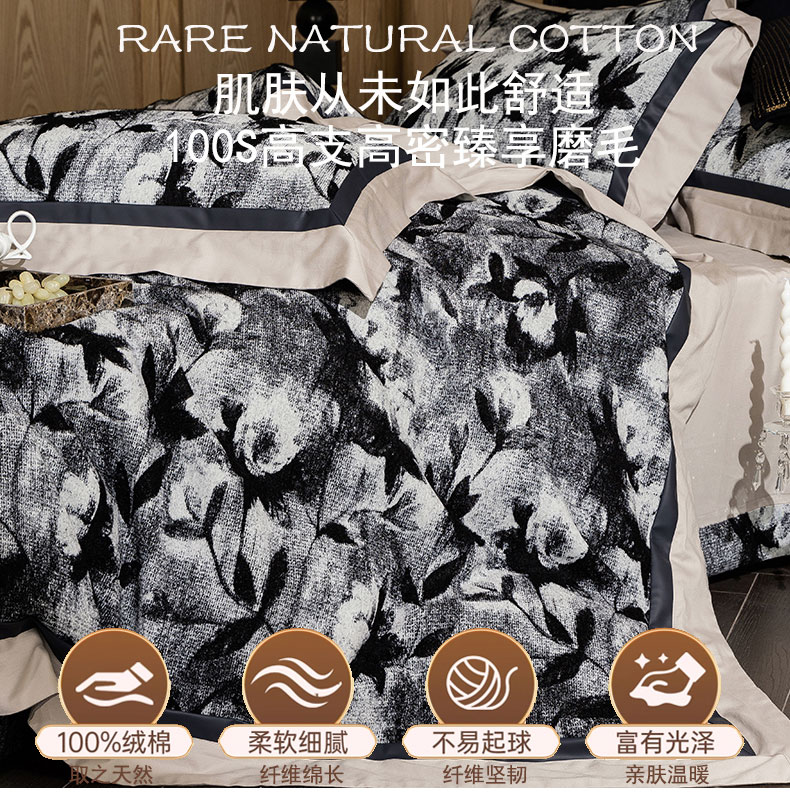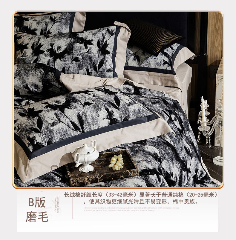 蒂爵 2025新款A版羊毛混纺、b版新疆长绒棉时尚秋冬四件套-叶雨 叶雨-黑