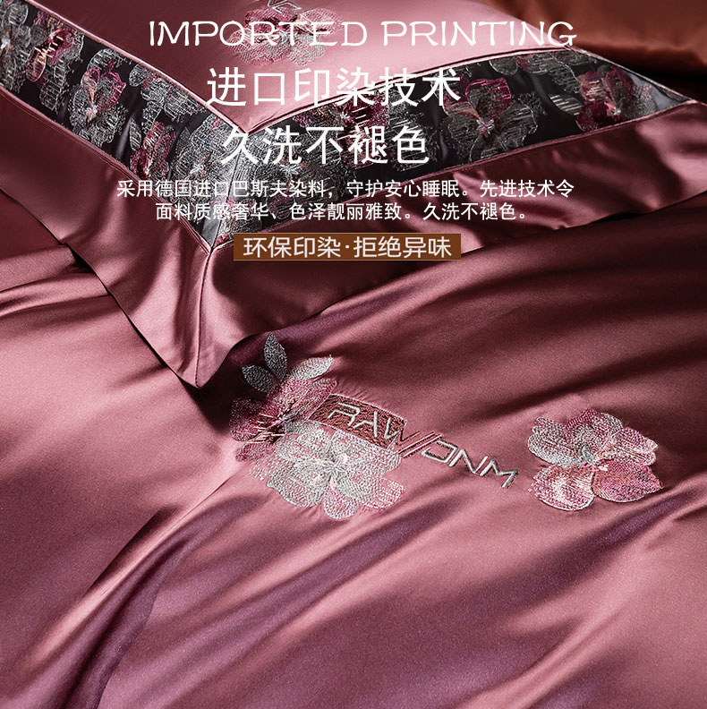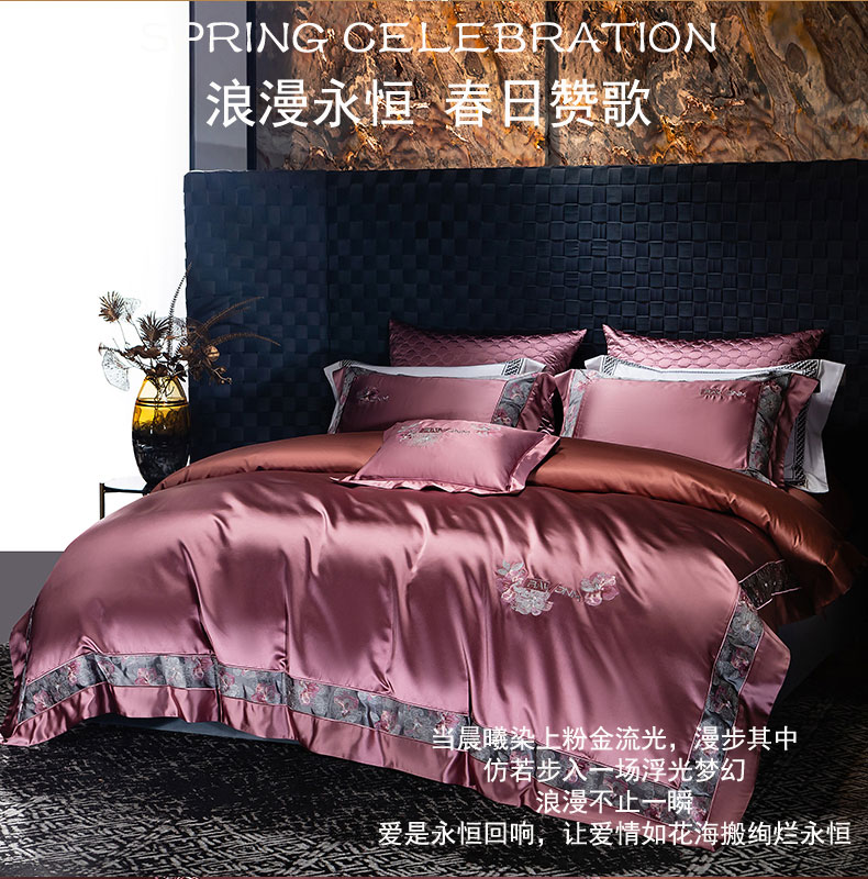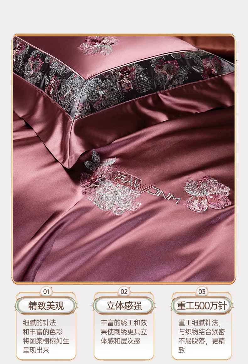 蒂爵 2025新款A版真丝棉b版新疆长绒棉时尚高端四件套-云梦 云梦-丁香紫