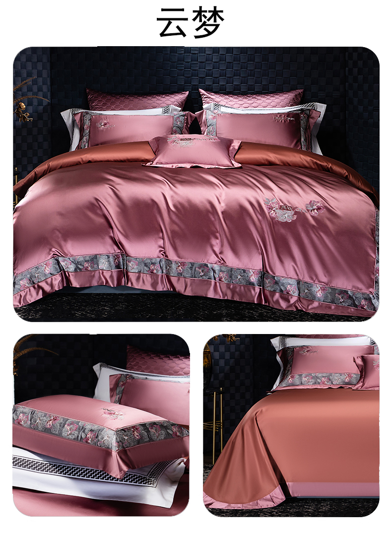 (总)蒂爵 2025新款A版真丝棉b版新疆长绒棉时尚高端四件套-云梦,云梦-丁香紫,云梦-焦糖棕,云梦-琉璃金,云梦-烟灰色