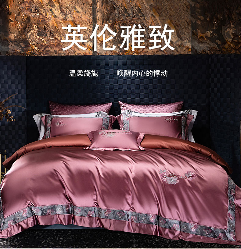 (总)蒂爵 2025新款A版真丝棉b版新疆长绒棉时尚高端四件套-英伦雅致,英伦雅致-粉,英伦雅致-红,英伦雅致-灰,英伦雅致-香槟