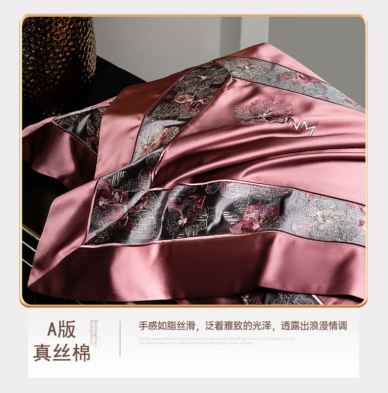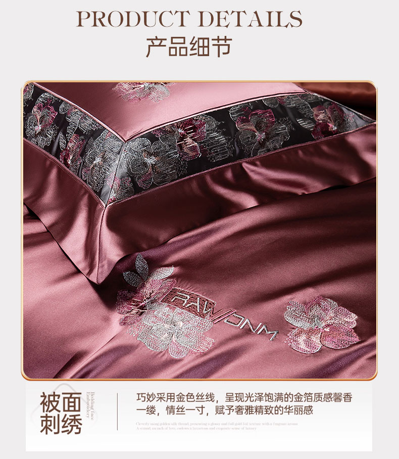 商品名称:蒂爵 2025新款A版真丝棉b版新疆长绒棉时尚高端四件套-云梦 云梦-丁香紫