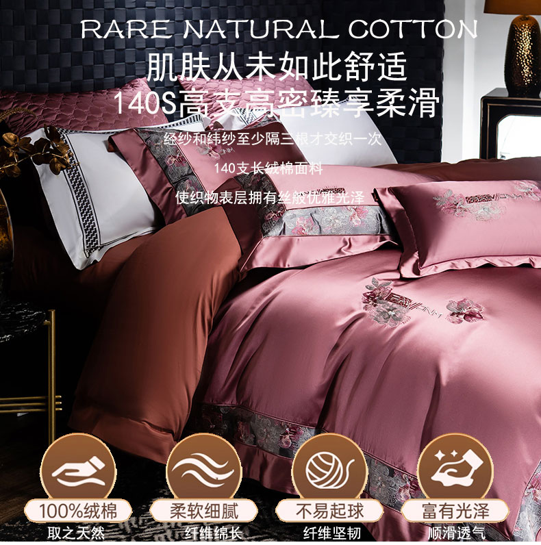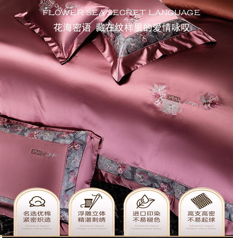 (总)蒂爵 全棉纯棉长绒棉大绣花婚庆四件套,家业兴旺,缘来是你,百花贺喜,玫瑰爱恋,玫瑰爱恋金,情意绵绵