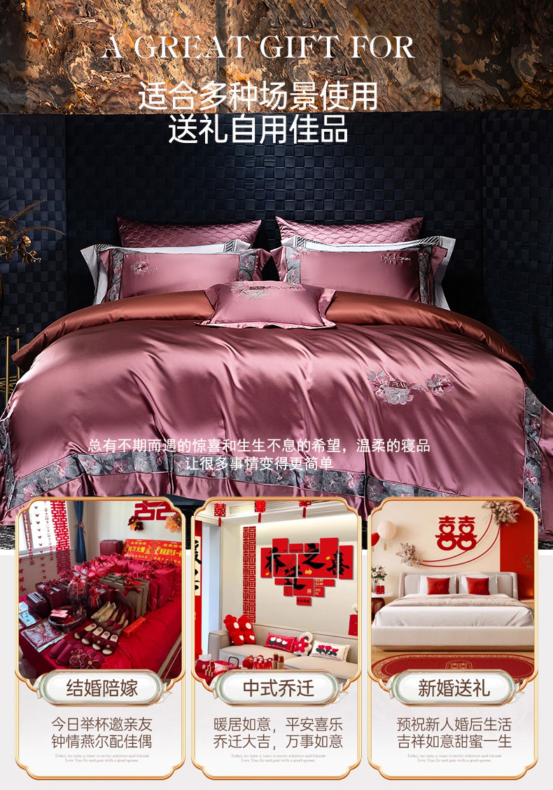 (总)蒂爵 2025新款婚庆长绒棉时尚小红书爆款刺绣婚庆四件套多件套,繁花似锦,天降喜缘,喜嫁,幸福良辰