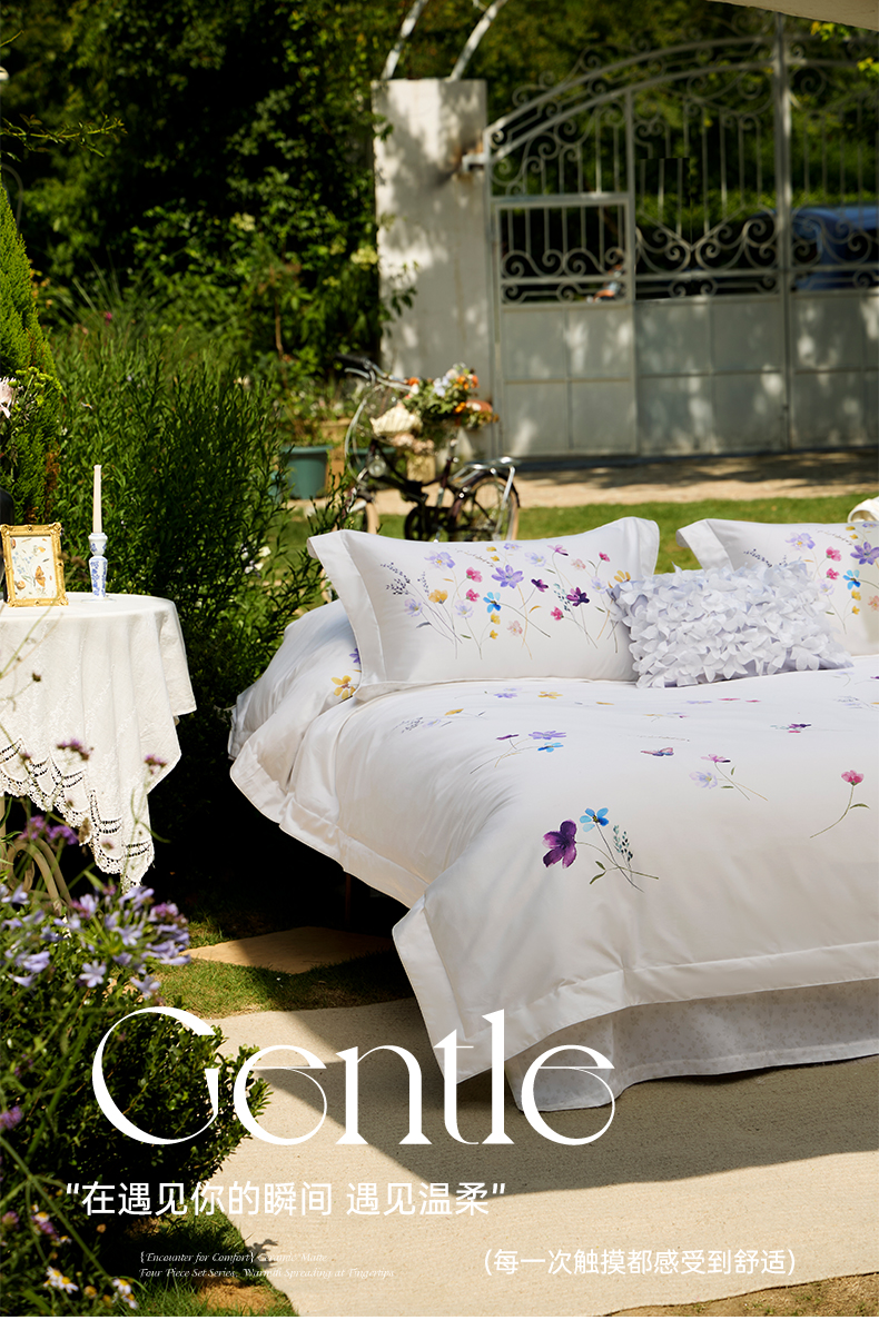 (总)嘉恋 2023新款100支全棉提花镂空四件套送包装,薄暮金,羽叶白,斑马纹,罗勒灰,西柚粉