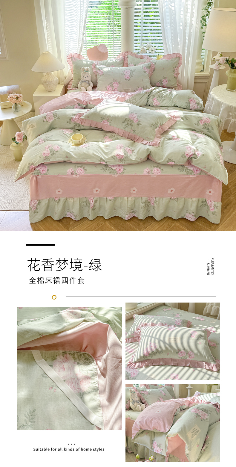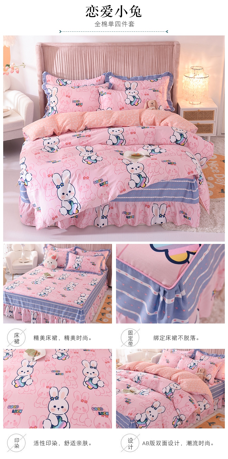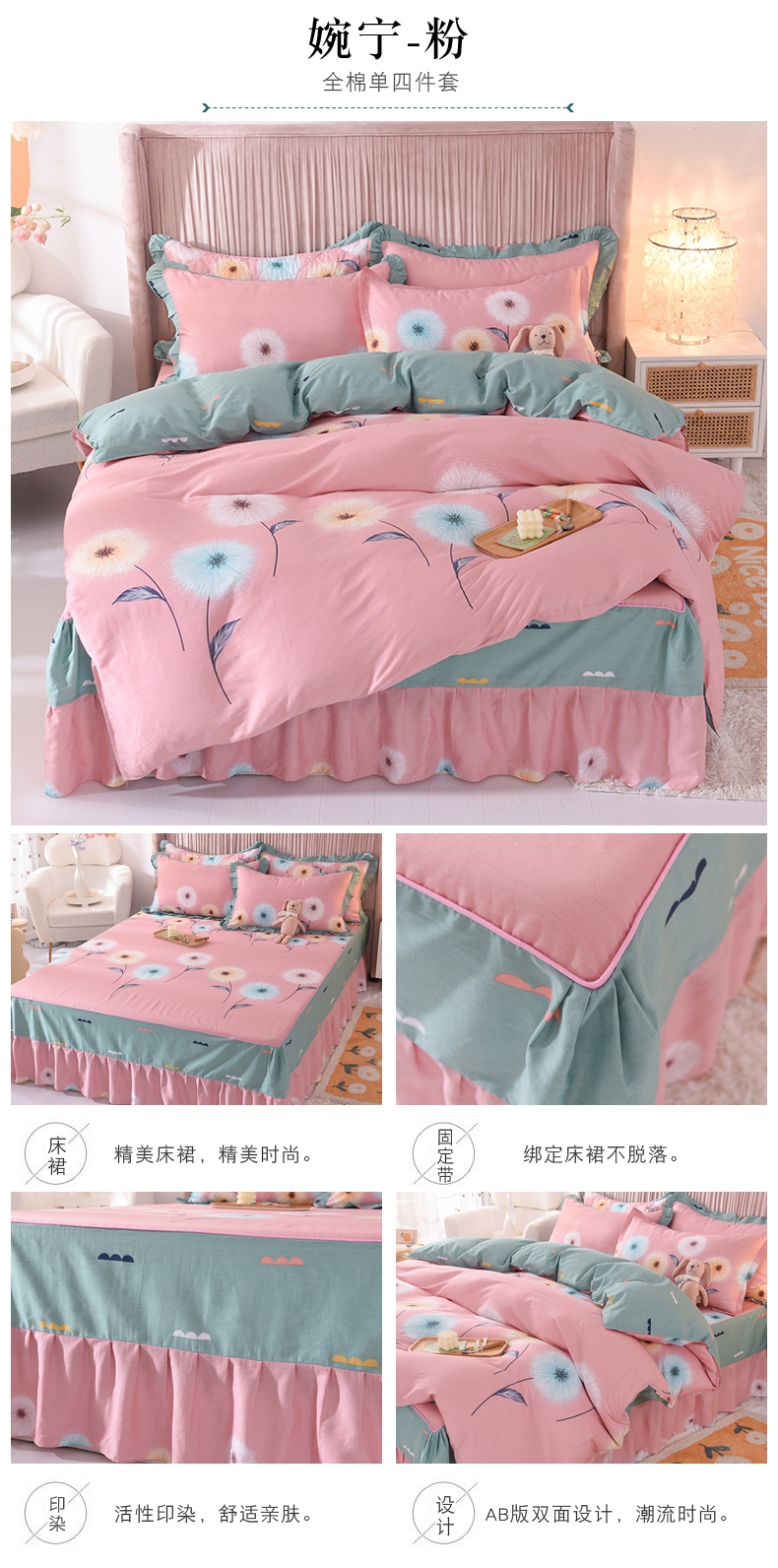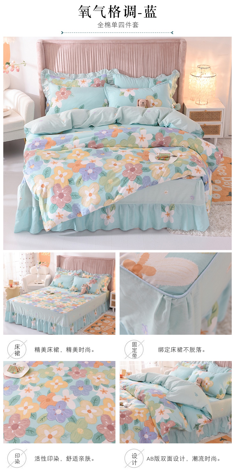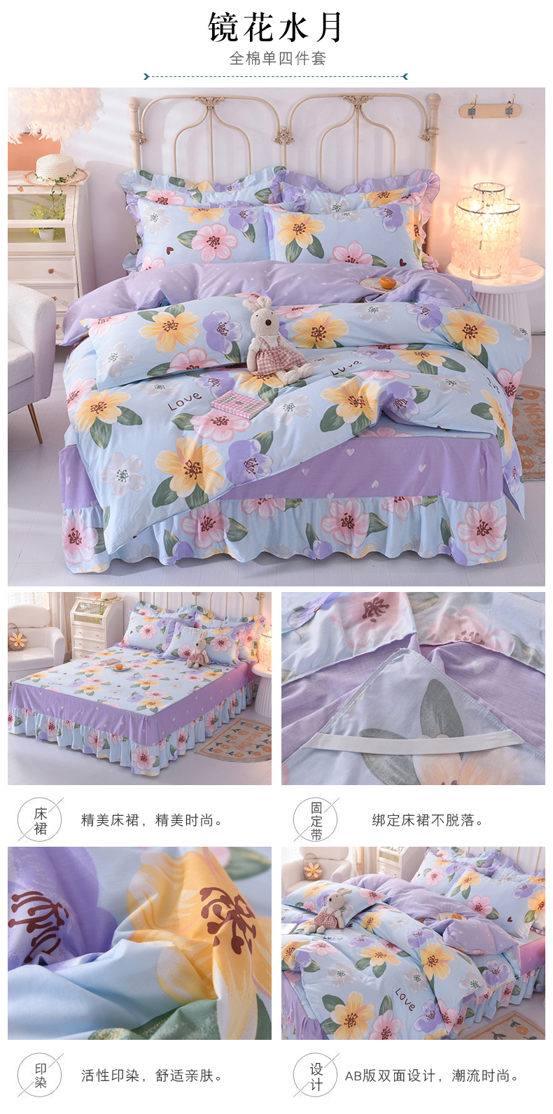 (总)美达家纺 2025新款全棉纯棉AB版蕾丝小花边单层床裙四件套,解语花,南湘,沁雨花叶,悦棠,花香梦境,夏沫浅语-蓝,恋爱小兔,氧气格调,婉宁-粉,镜花水月
