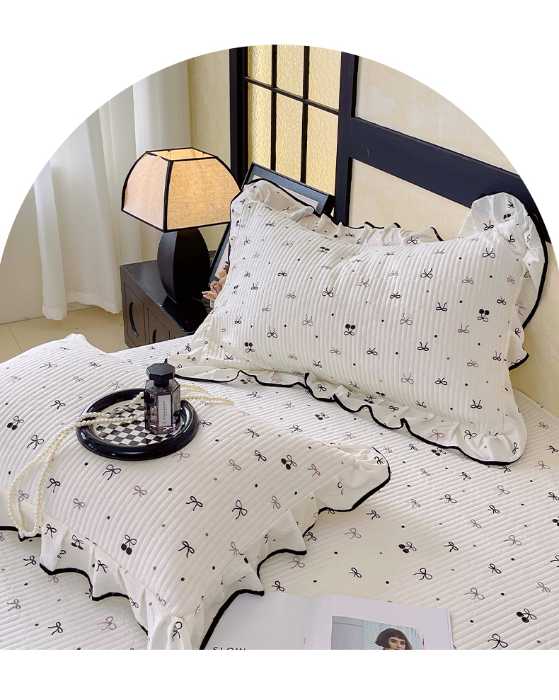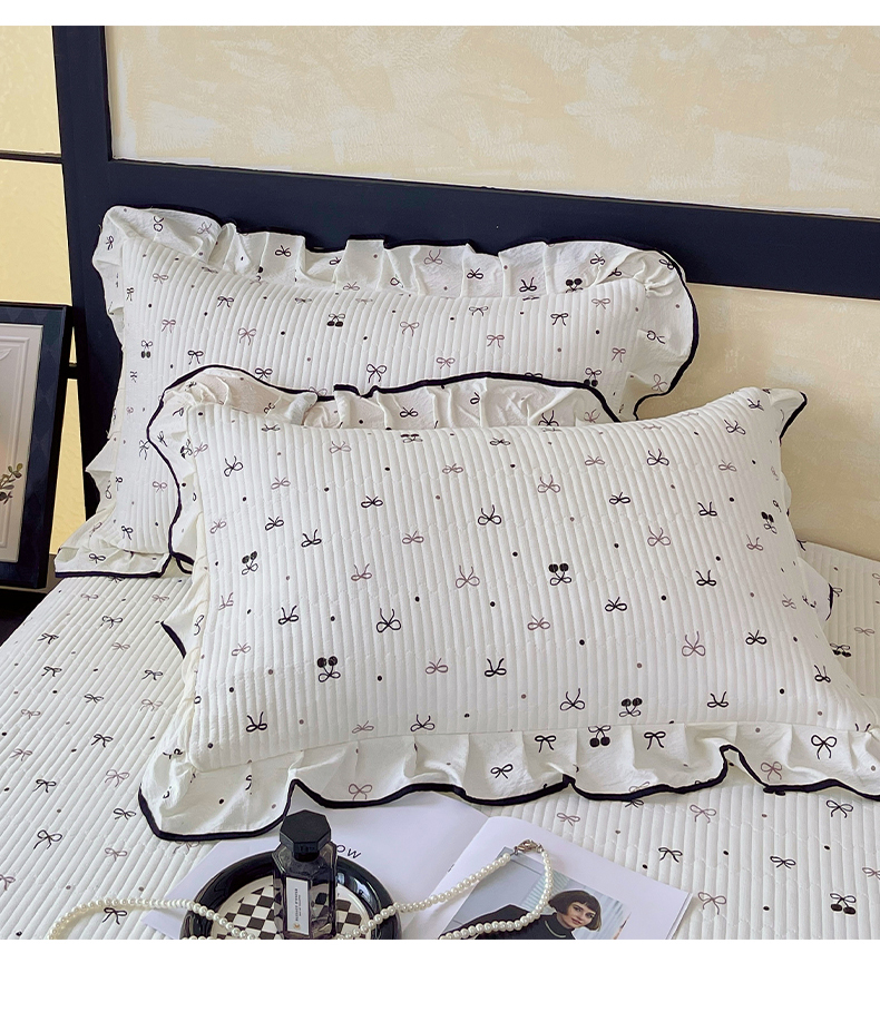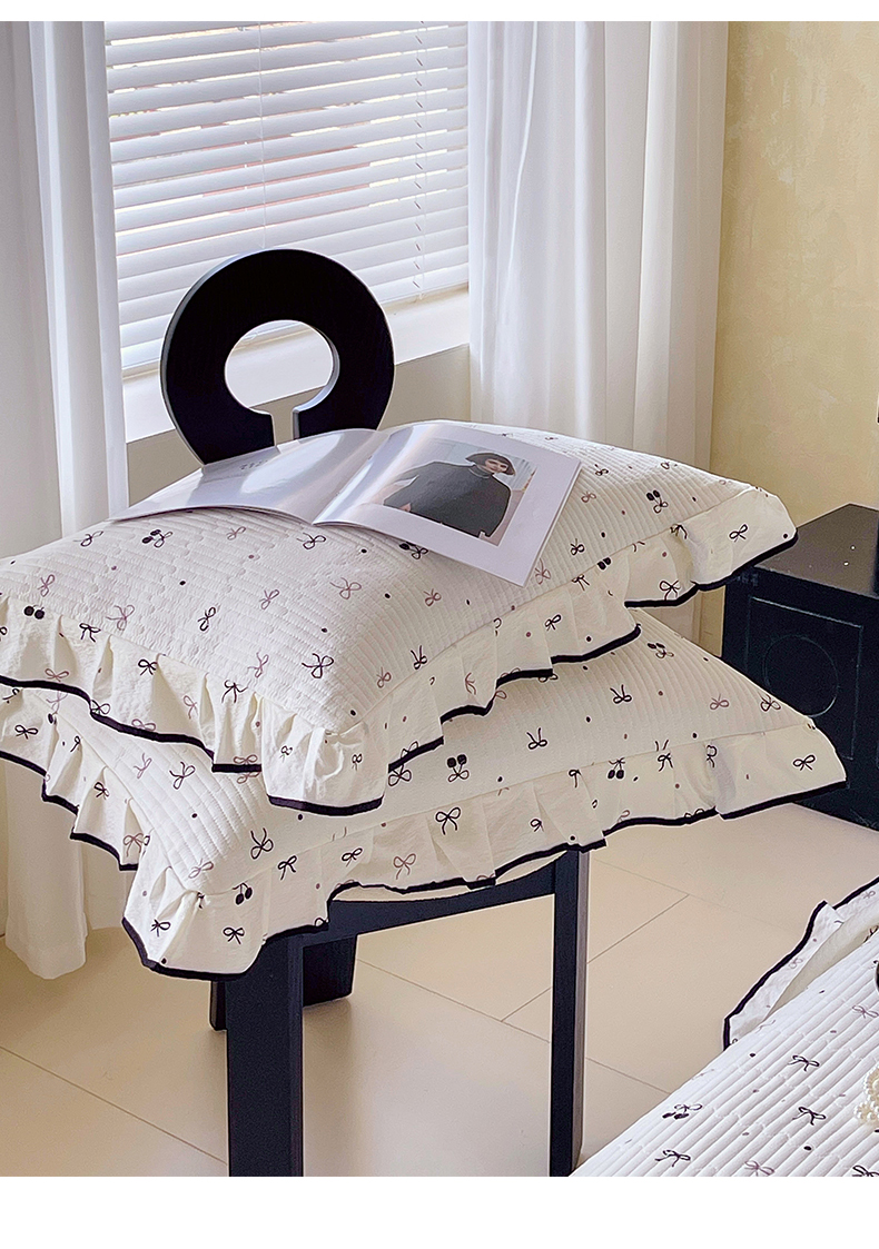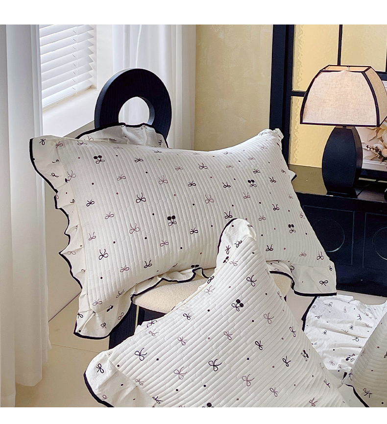 商品名称:雨彤家纺 2025新款A类云感公主风双层纱印花夹棉花边款枕套 黑樱梦境-公主风