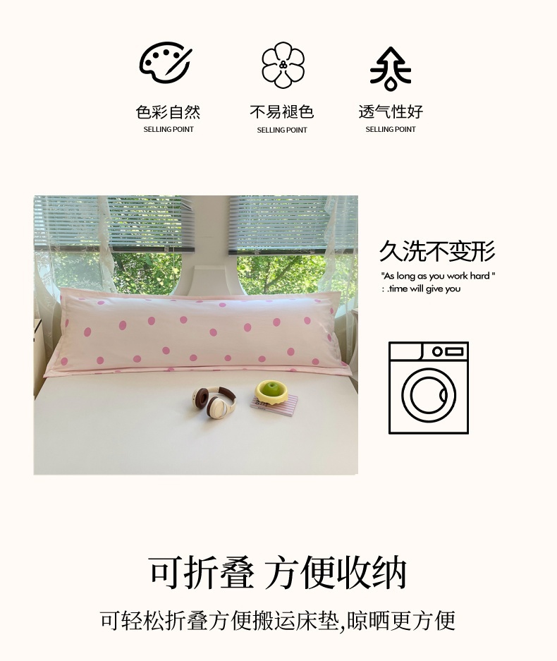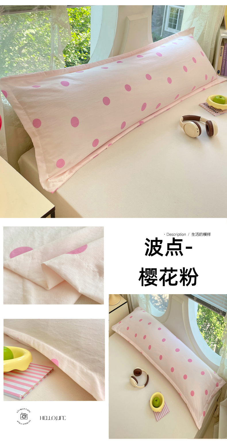 商品名称:梦舒羽 2025新款双层纱双人枕套情侣学生长枕芯套枕头内胆套-缤纷波点 波点-樱花粉