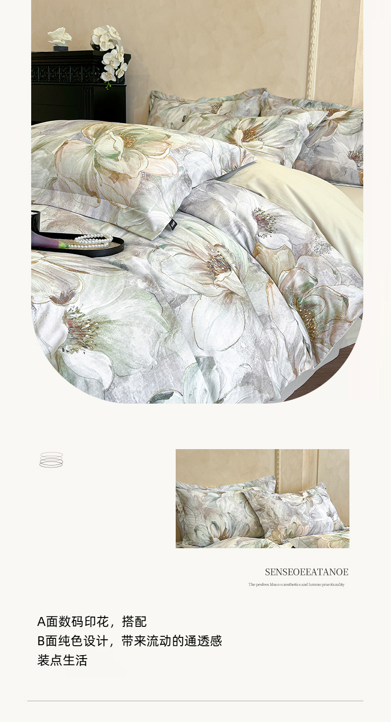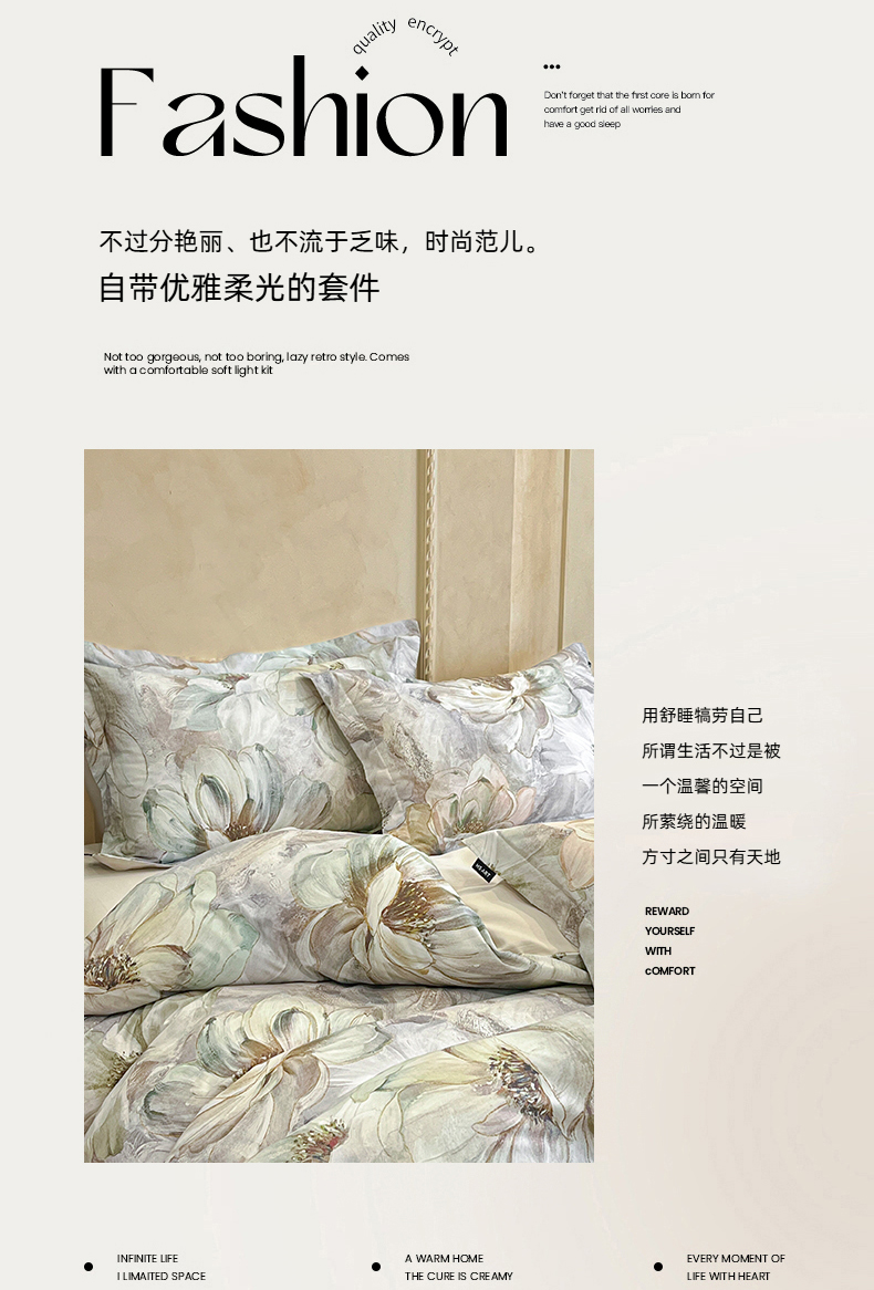 当前位置: 91家纺网 > 商品网购 > 床品套件 > 四件套 > 全棉普通四件套 > 禾时 2025新款全棉超柔数码印花磨毛四件套(32x21磨毛) 花开宿语(灰)