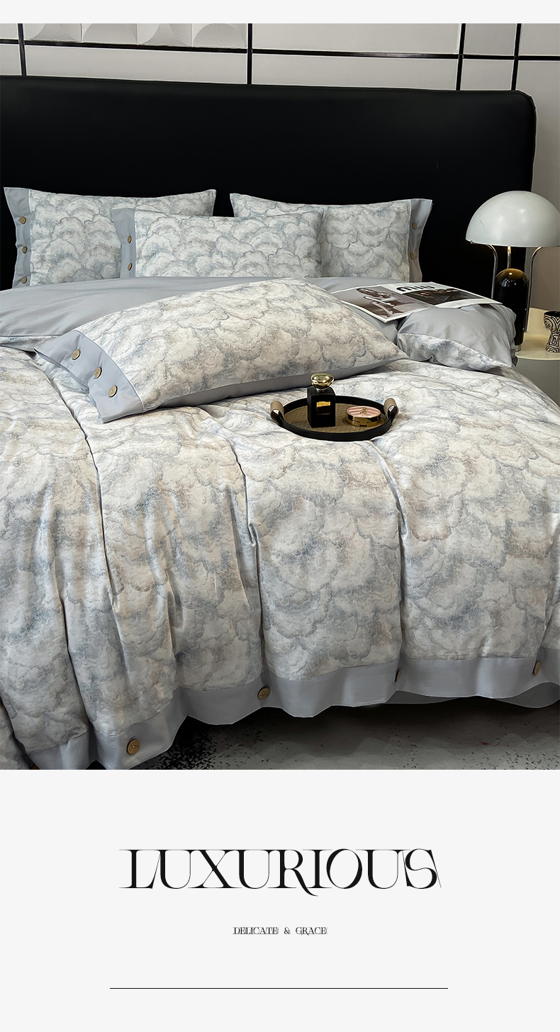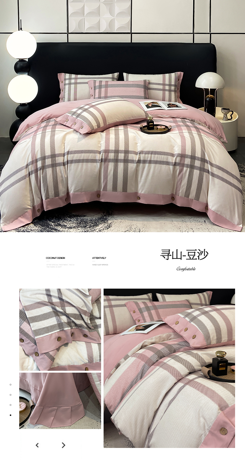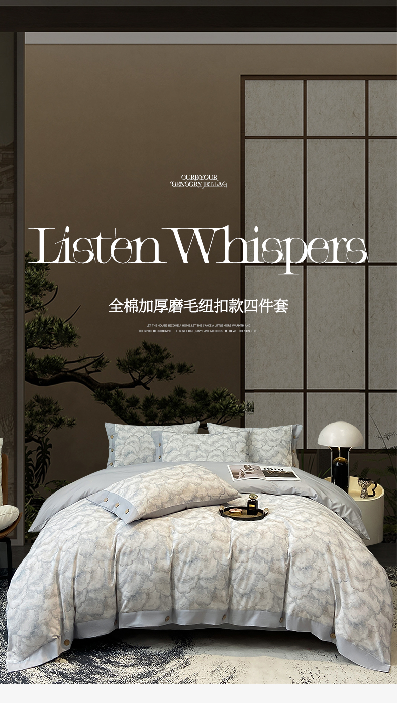 慕希家纺 2025新款全棉纯棉轻奢加厚磨毛纽扣款四件套 雾林-浅灰