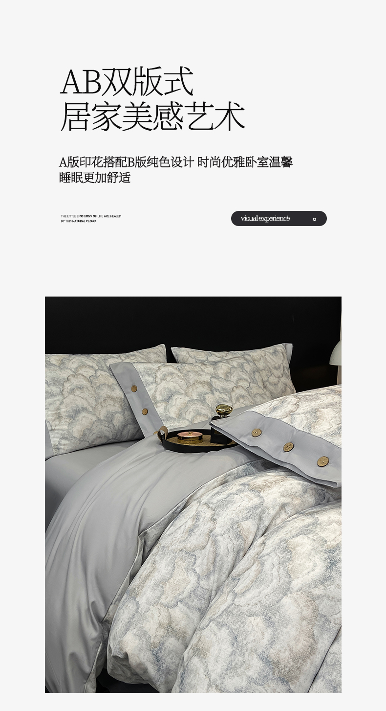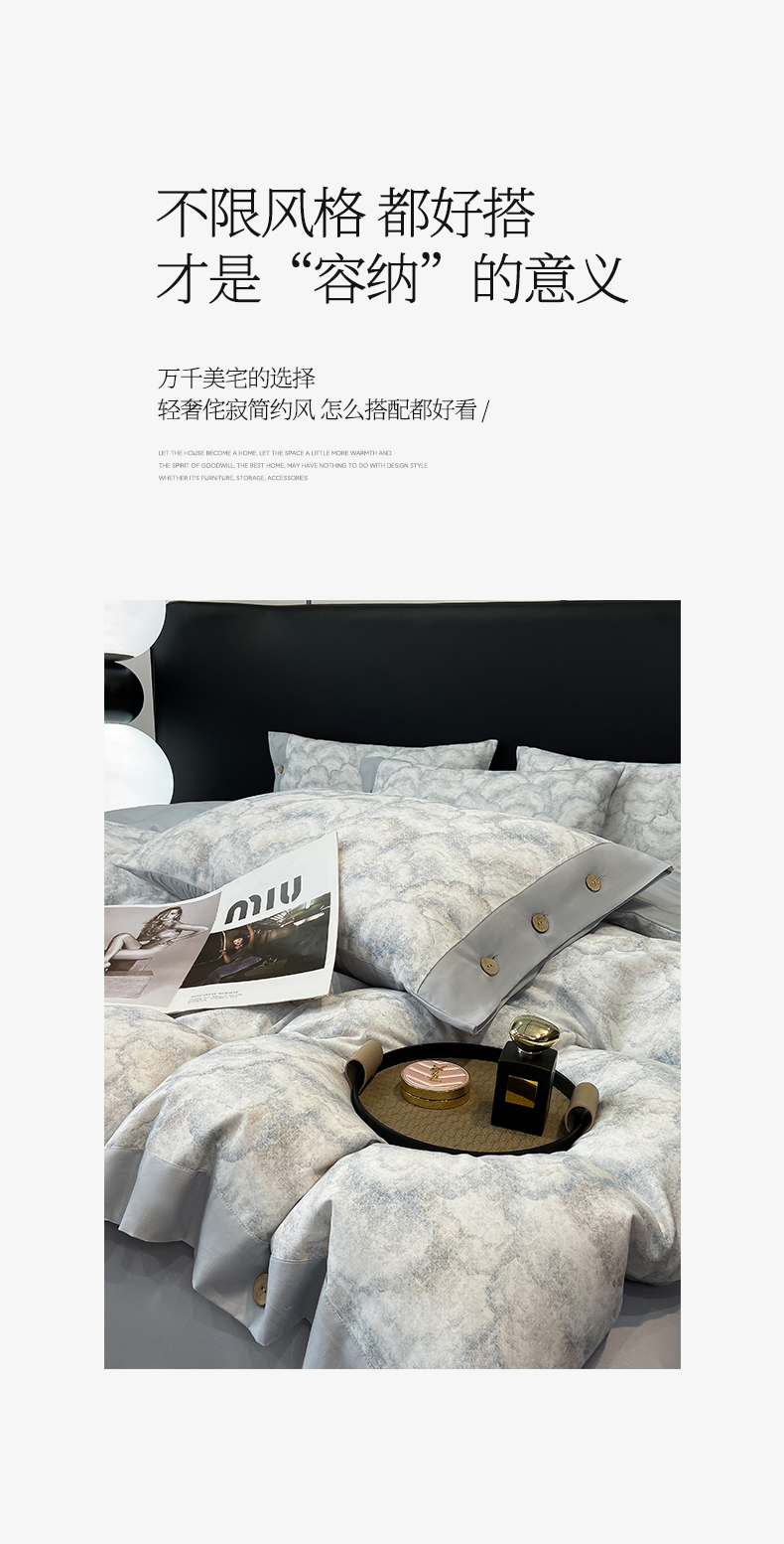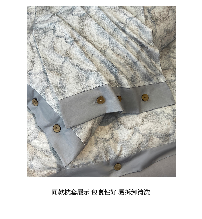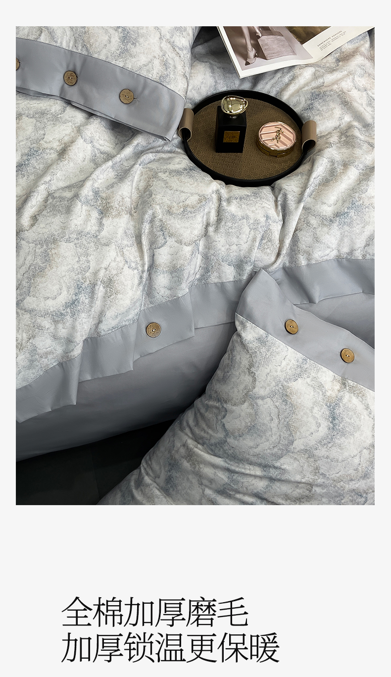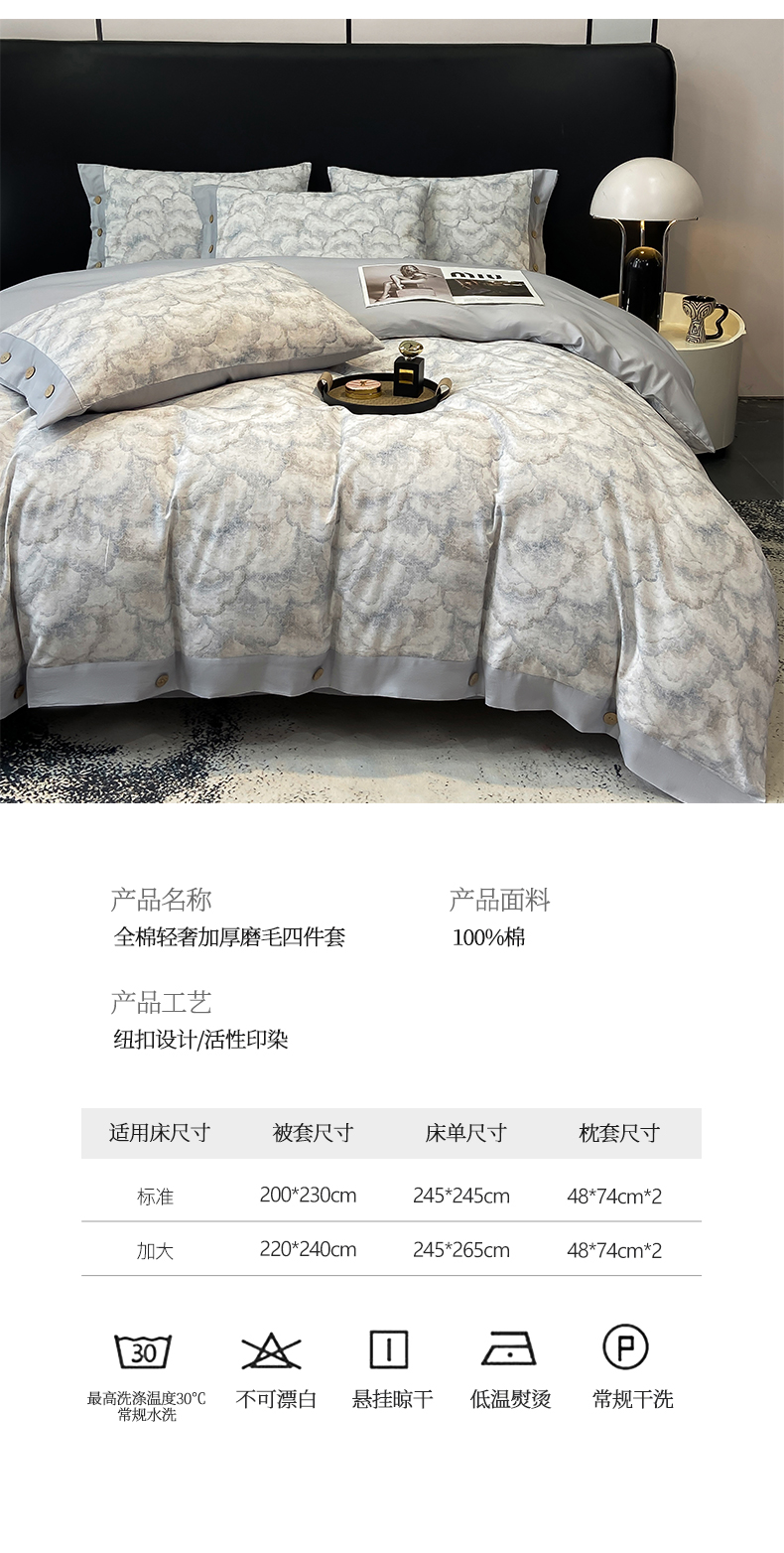 商品名称:慕希家纺 2025新款全棉纯棉轻奢加厚磨毛纽扣款四件套 雾林-浅灰