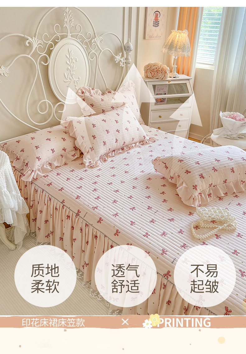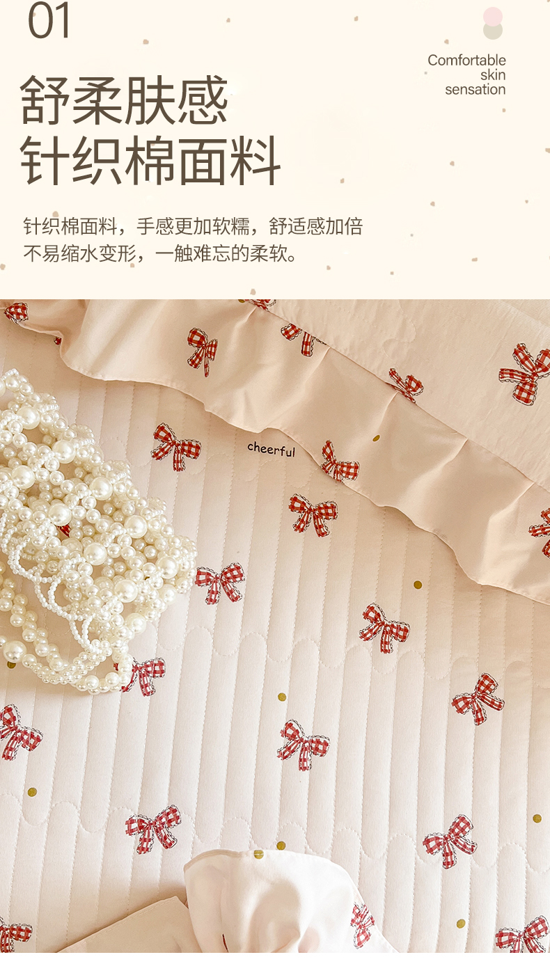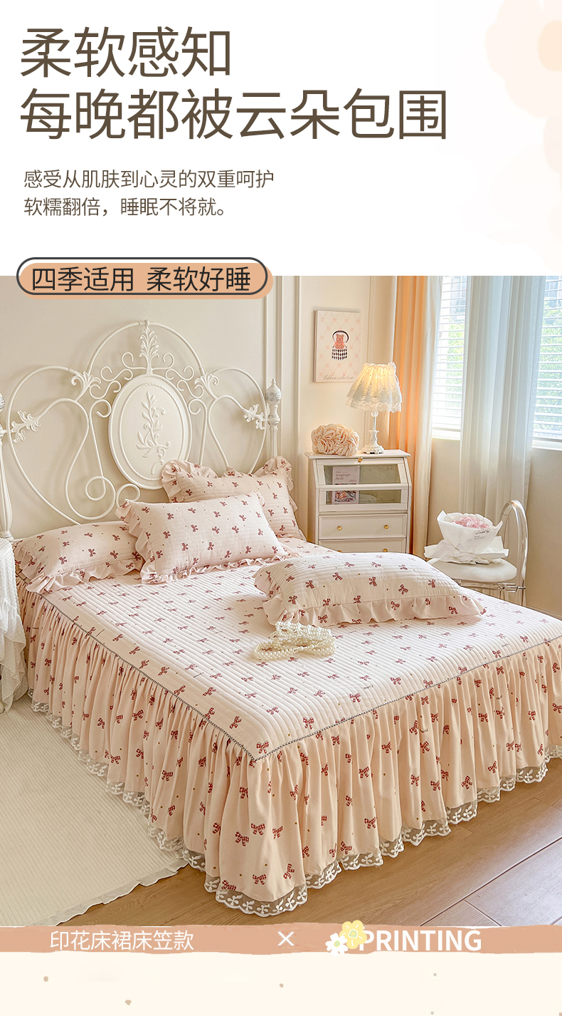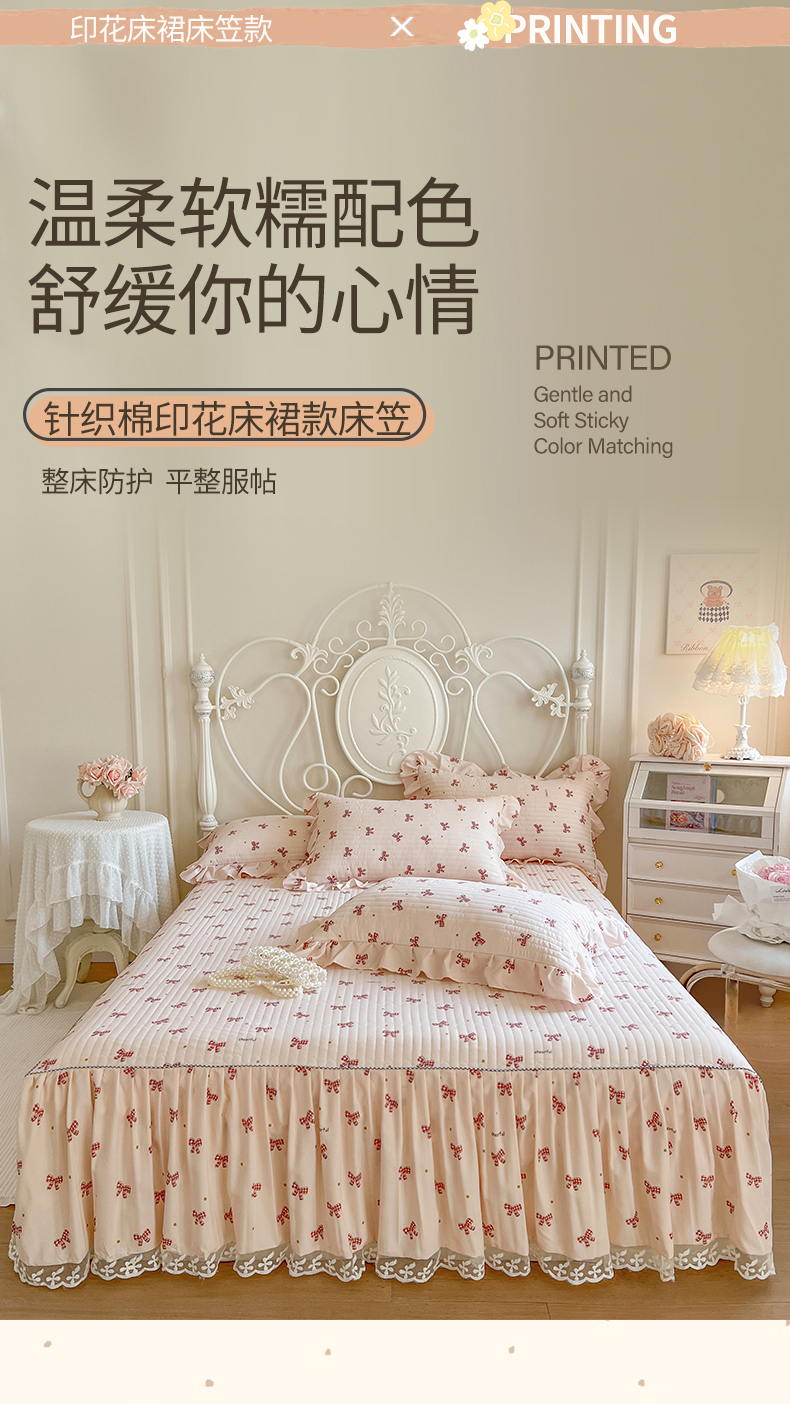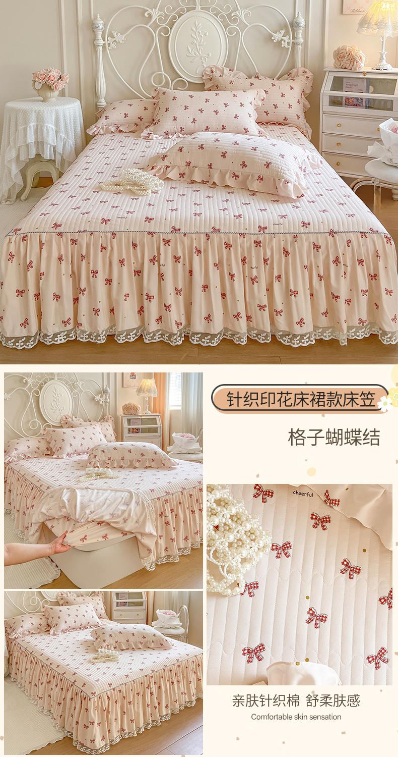 • 91家纺网 家纺一手货源 找家纺 网红馆2025新款针织印花单床裙 格子蝴蝶结