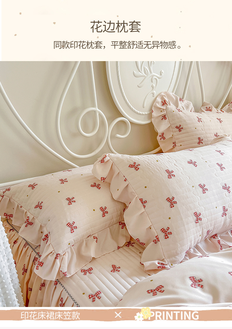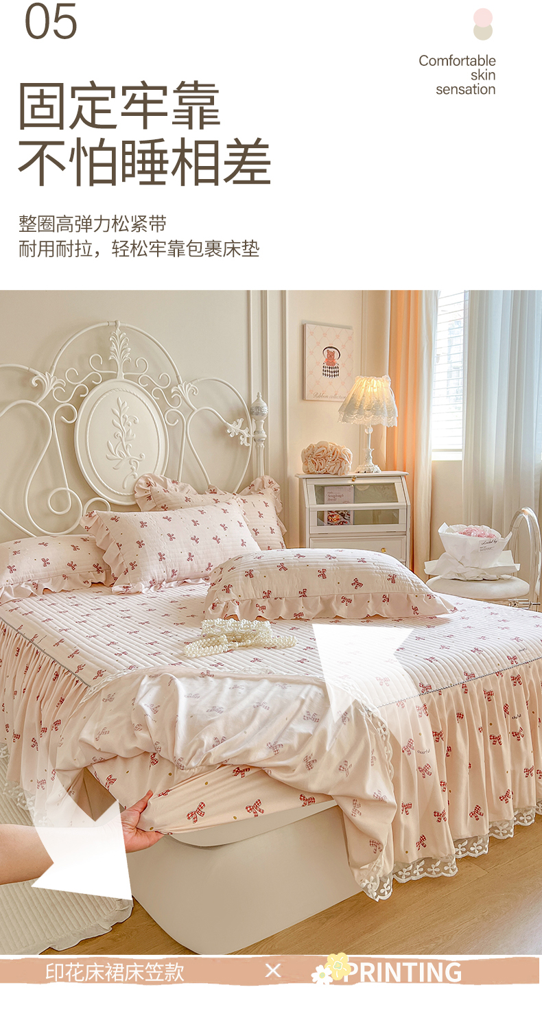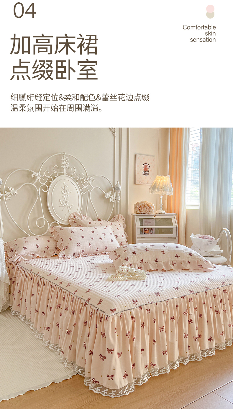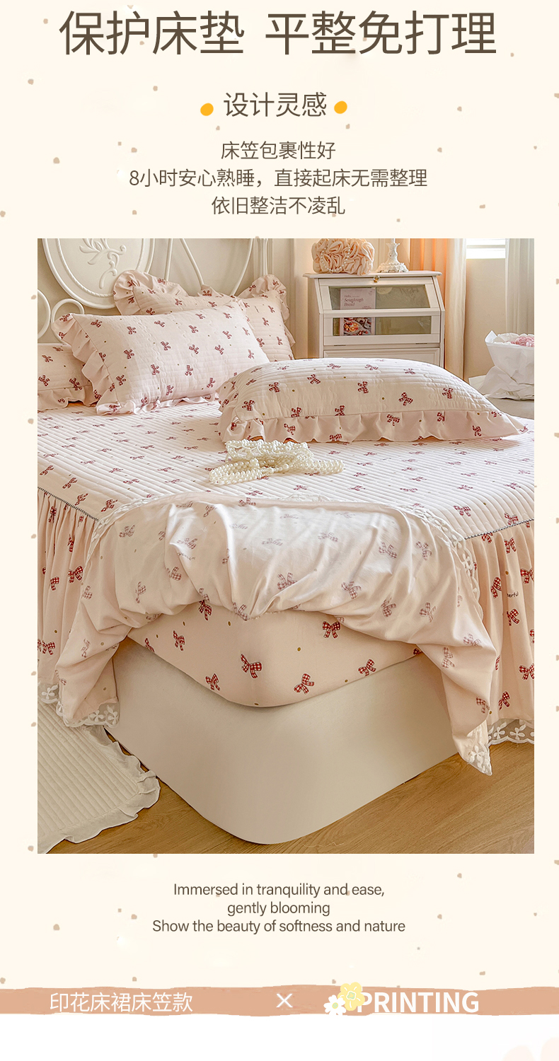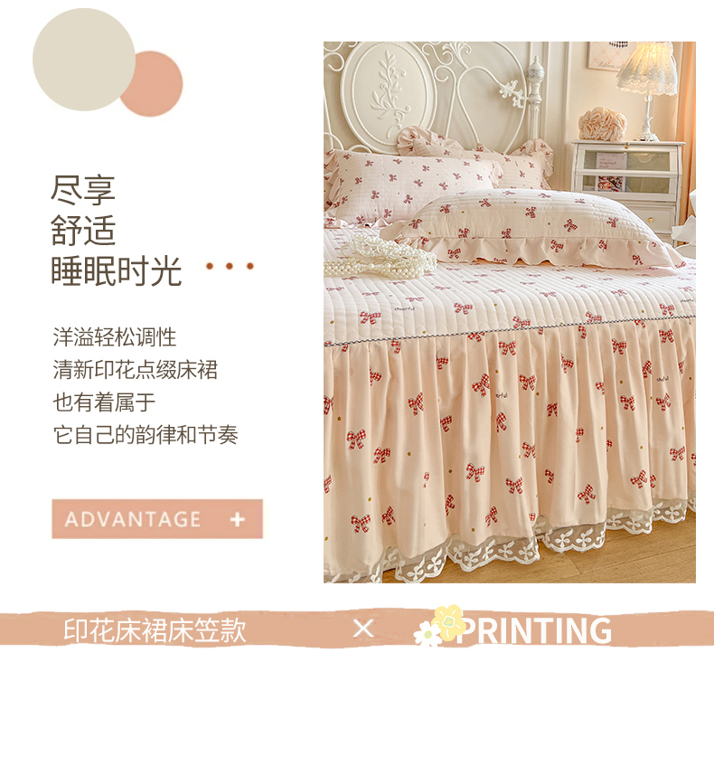 • 91家纺网 家纺一手货源 找家纺 网红馆2025新款针织印花单床裙 格子蝴蝶结