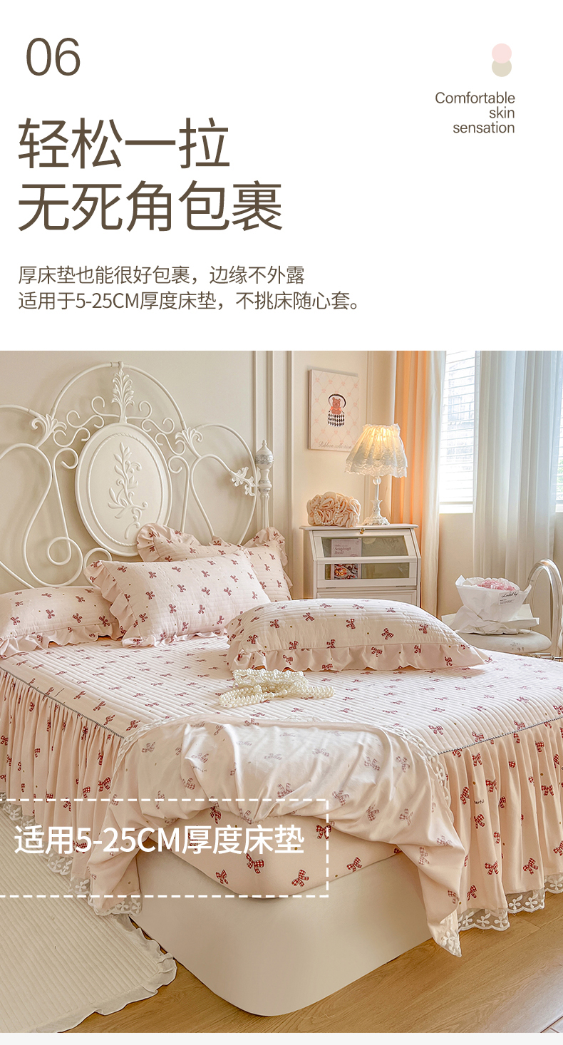 (总)网红馆(ck家纺) 2026新款全棉蕾丝花边床裙款床笠晨暮花间系列,绯红,粉色,麦绿,米色,浅紫,雾蓝