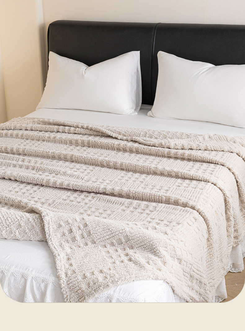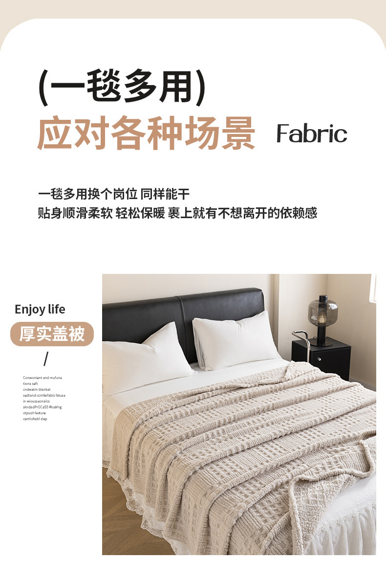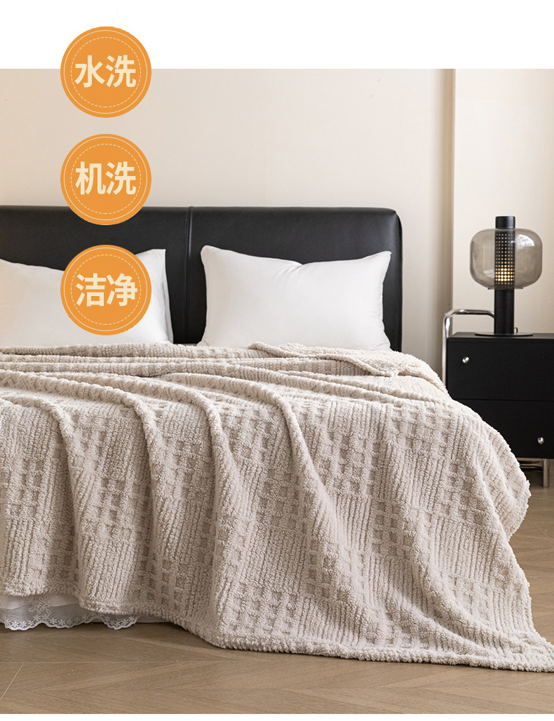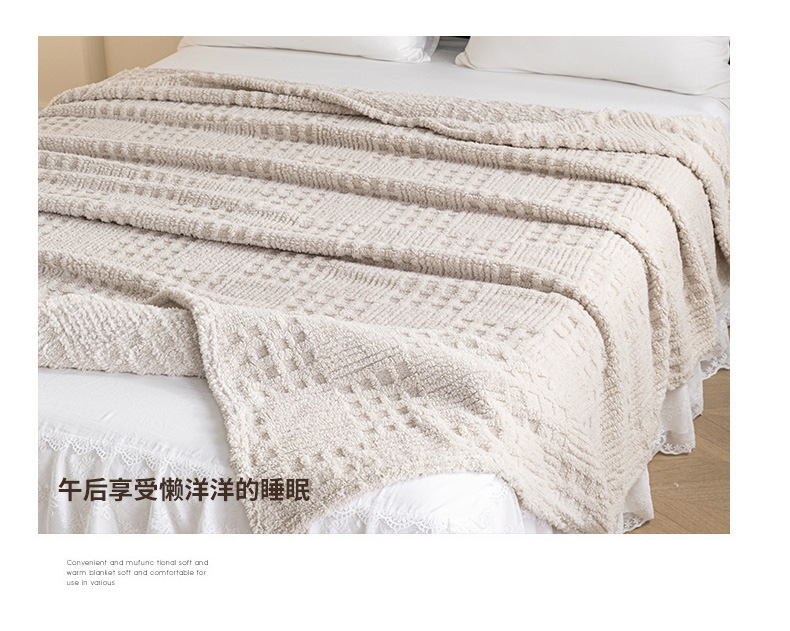 商品名称:梵心家纺 2025新款塔芙绒纯色华夫格提花毛毯多功能舒棉绒盖毯午睡毛毯-跨境电商 华夫格-浅咖