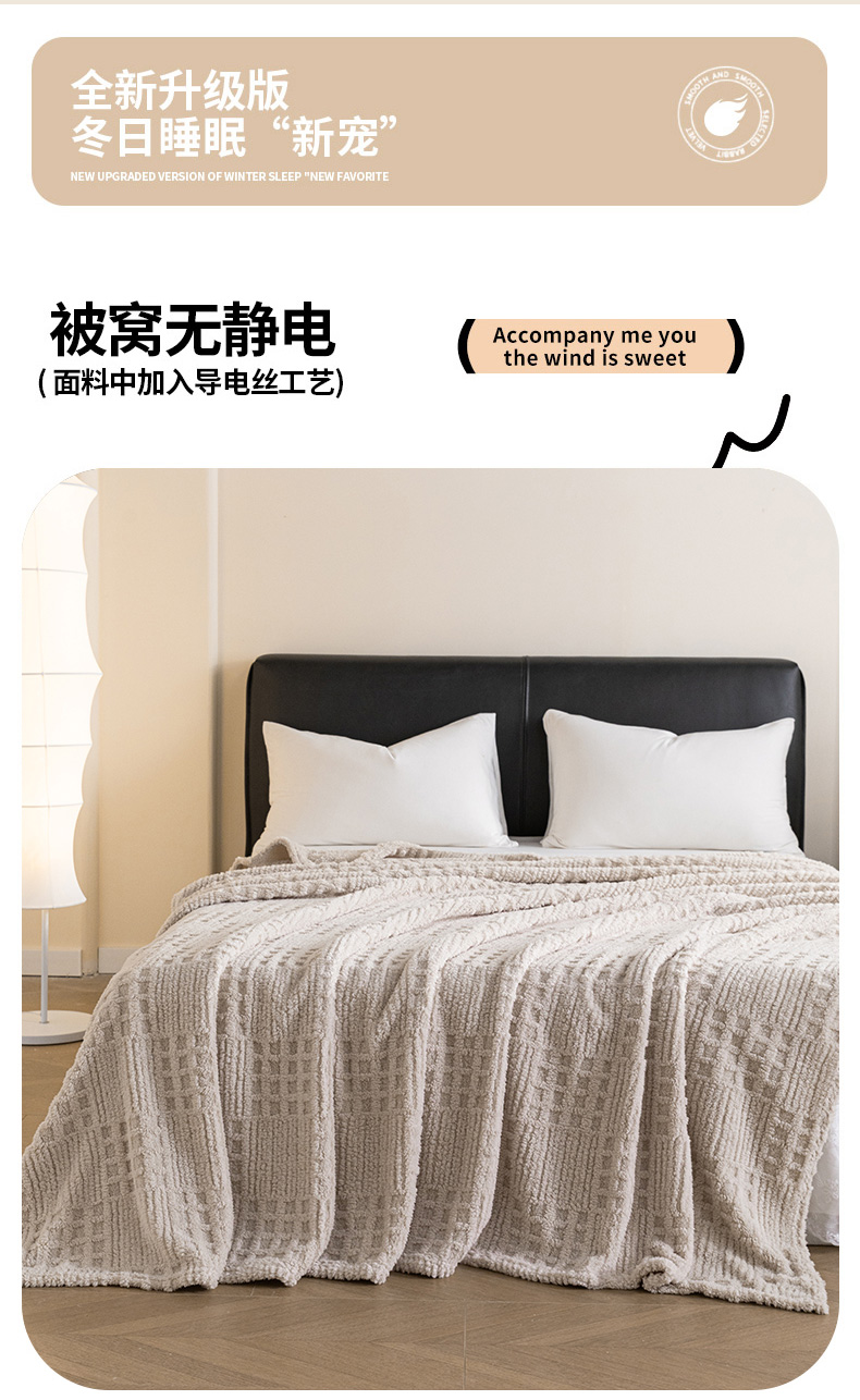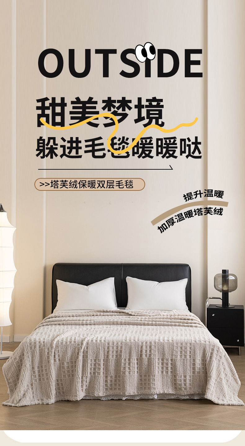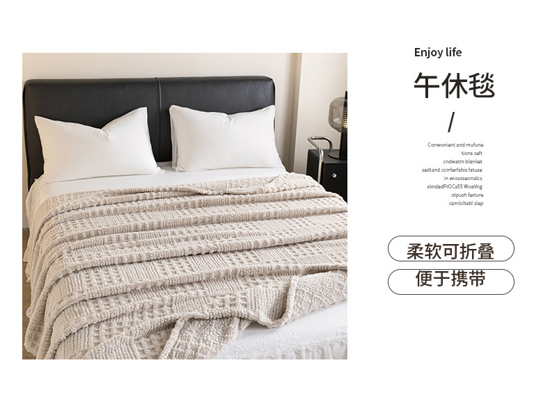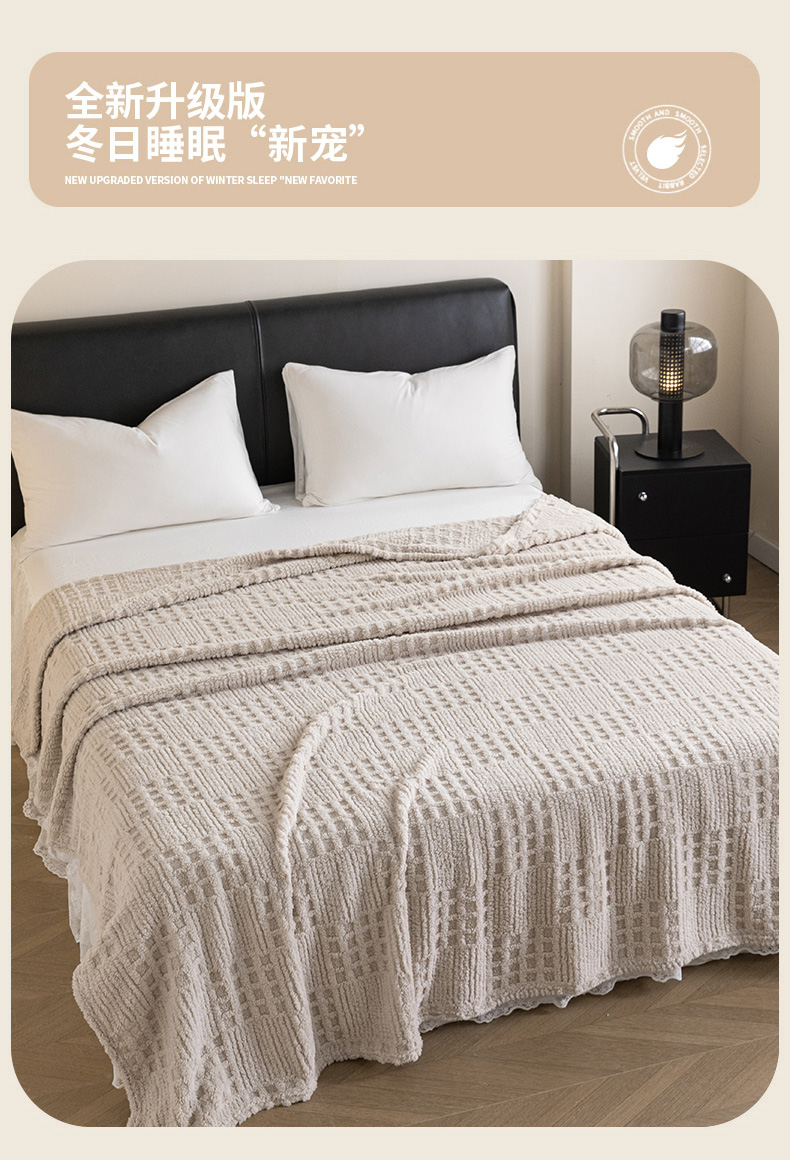 商品名称:梵心家纺 2025新款塔芙绒纯色华夫格提花毛毯多功能舒棉绒盖毯午睡毛毯-跨境电商 华夫格-浅咖