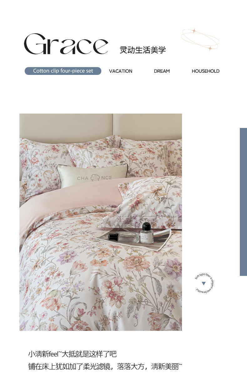 洺兰家居 2025新款高支高密轻奢数码印花四件套长绒棉纯棉四件套 歌谣