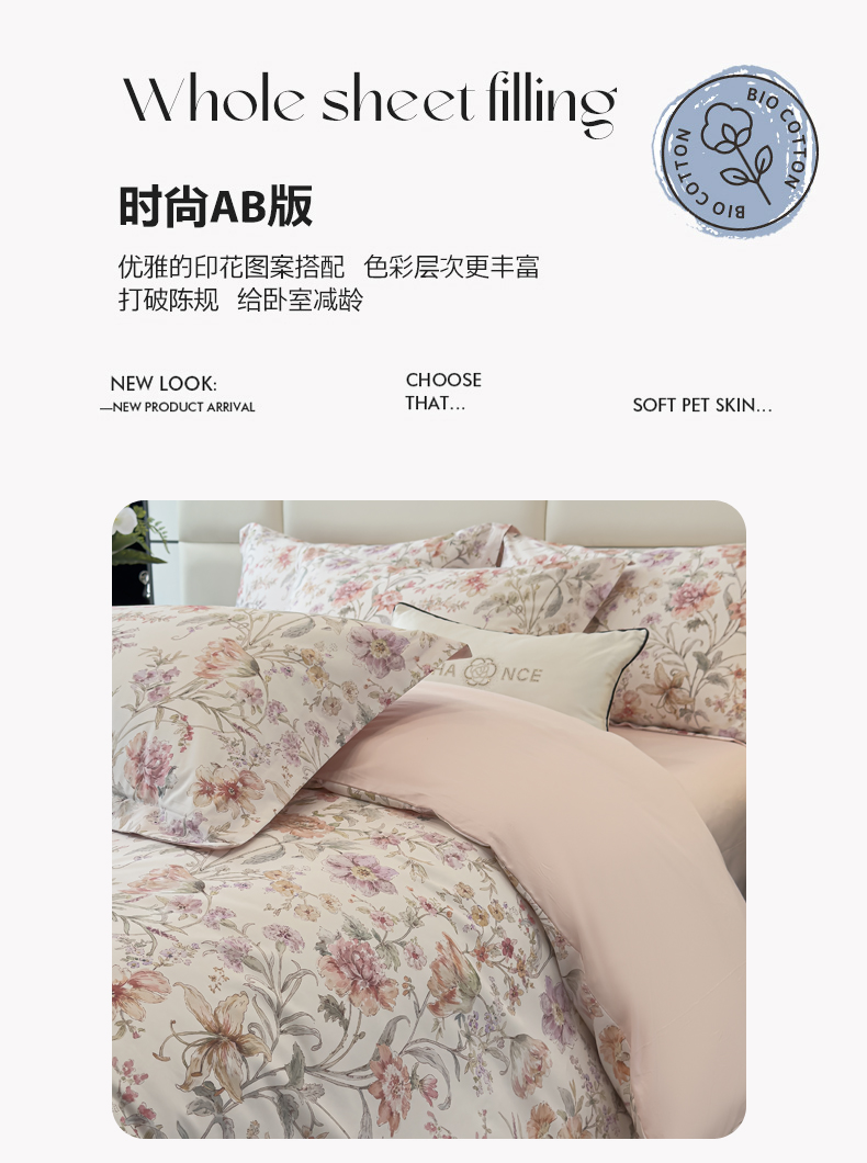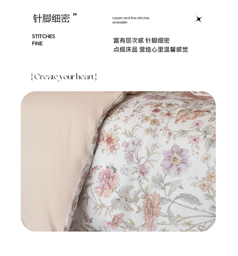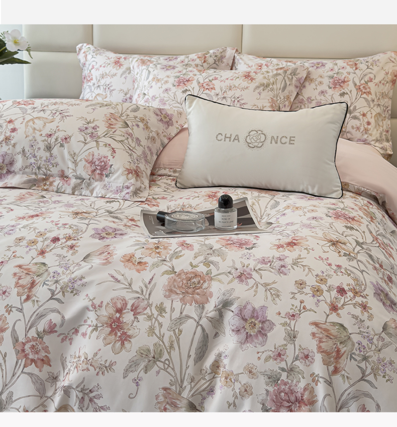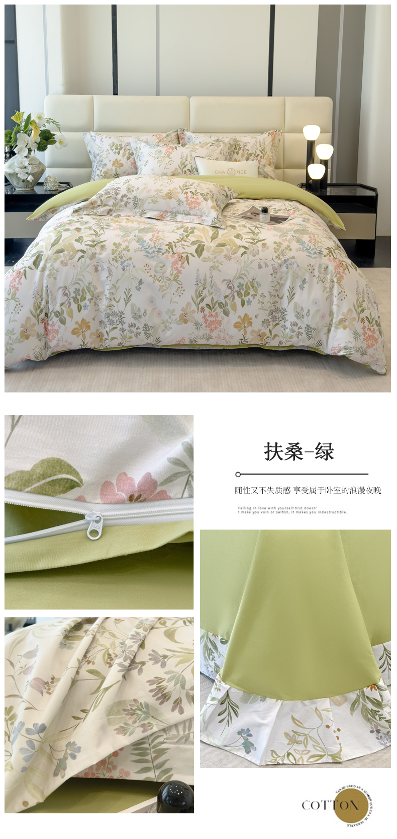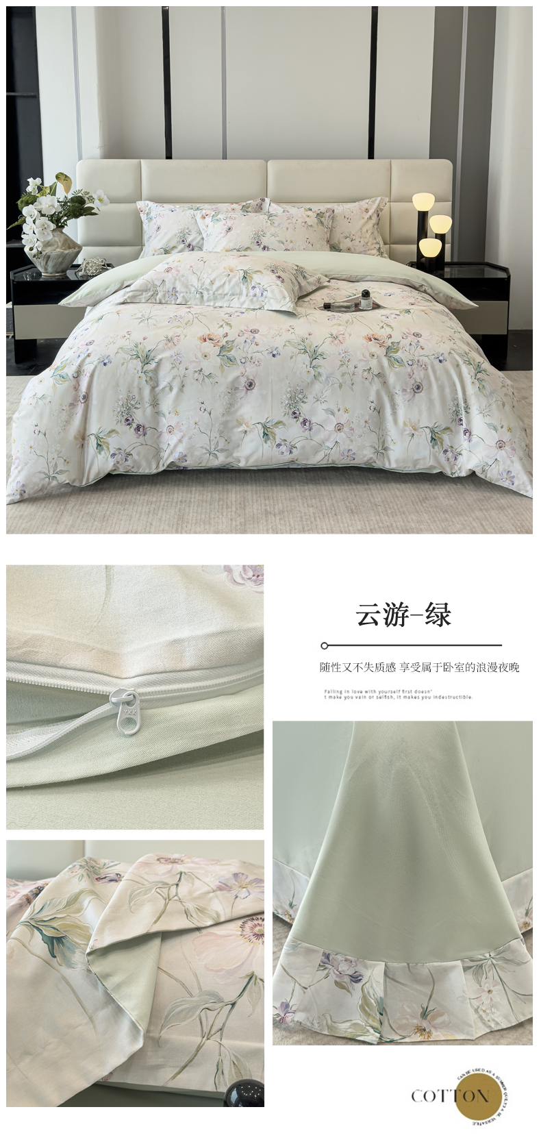 商品名称:洺兰家居 2025新款高支高密轻奢数码印花四件套长绒棉纯棉四件套 歌谣
