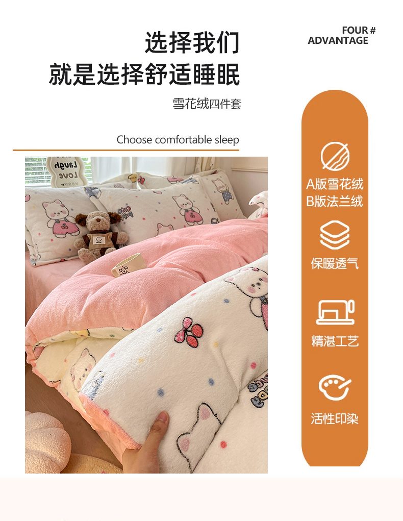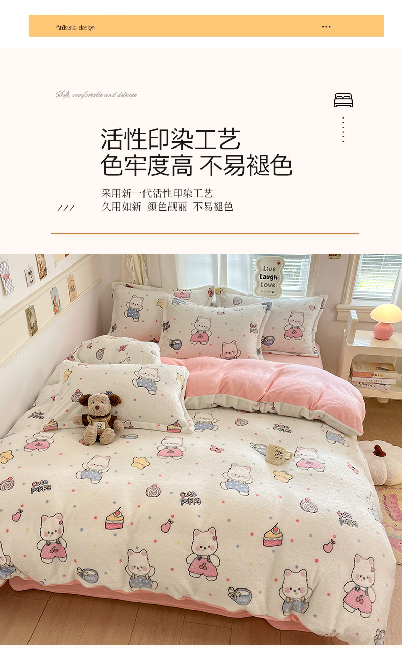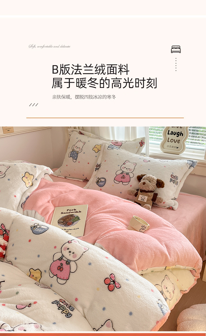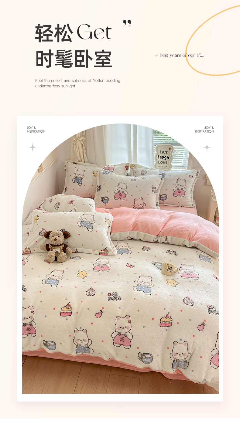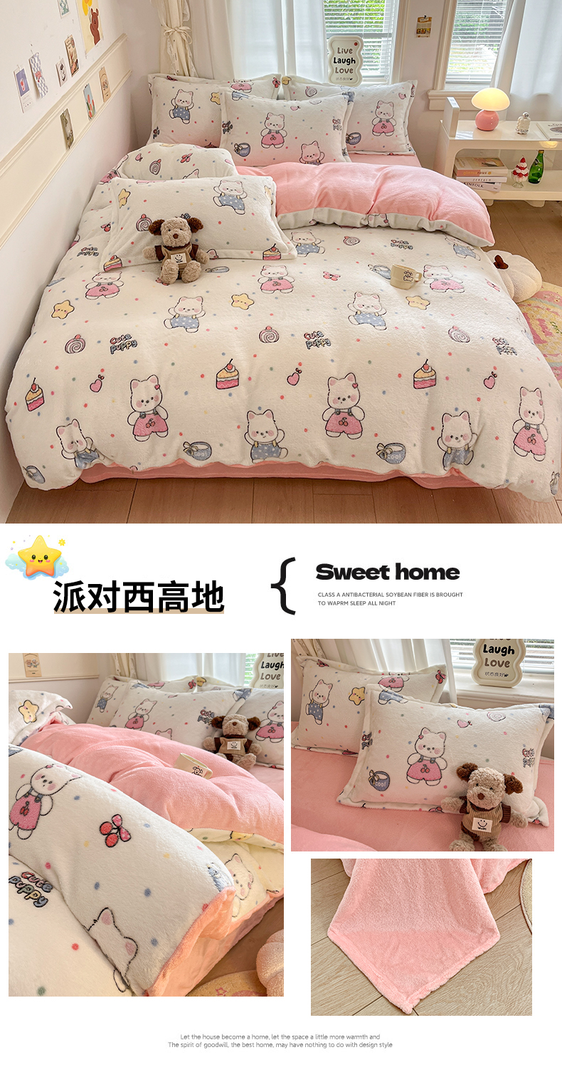 当前位置: 91家纺网 > 商品网购 > 床品套件 > 四件套 > 法莱绒四件套 > 川悦生活2025新款立体雪花绒印花大床四件套系列二场景二 派对西高地