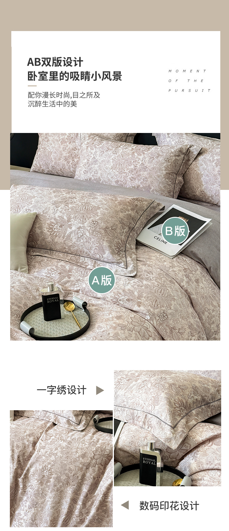 当前位置: 91家纺网 > 商品网购 > 床品套件 > 四件套 > 普通磨毛四件套 > 清雅福2025新款A类全棉磨毛数码印花四件套 莉娅·灰
