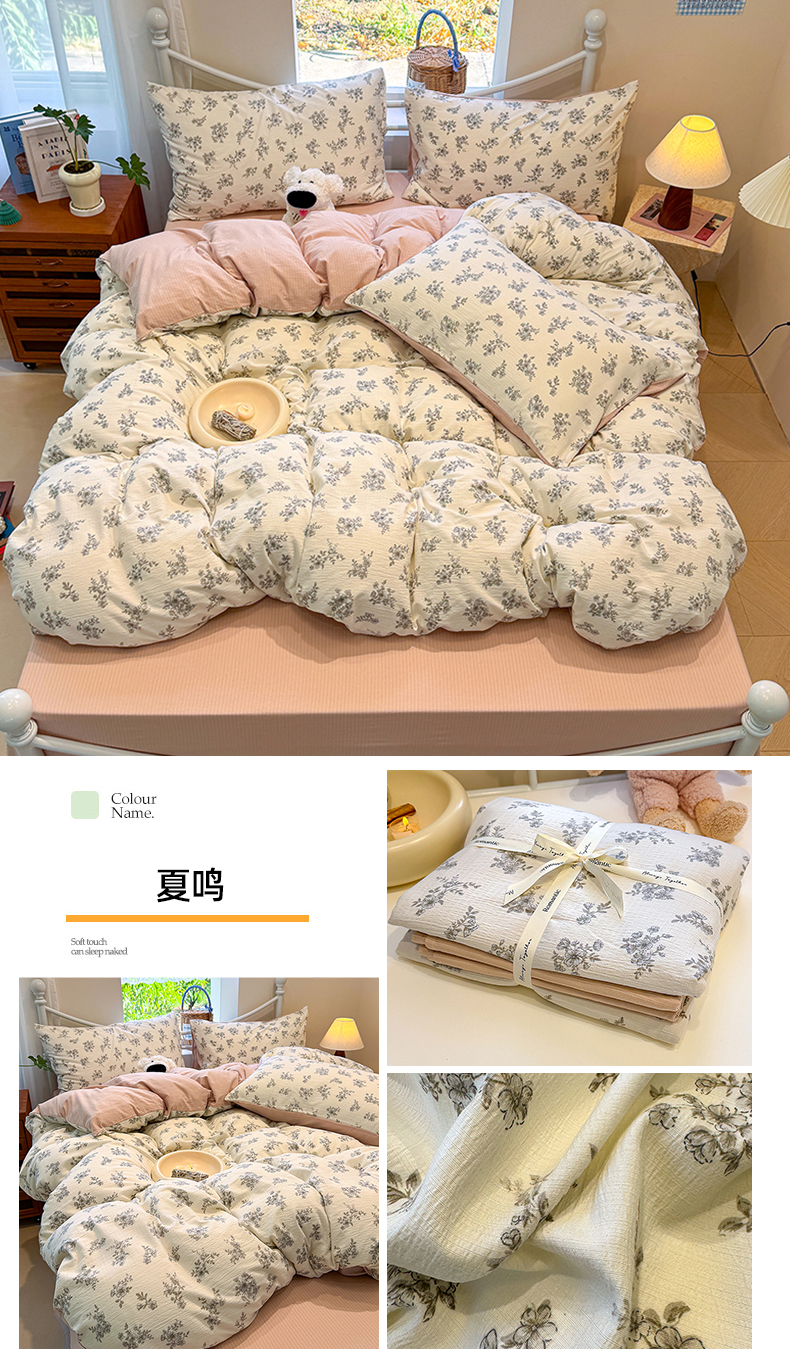 当前位置: 91家纺网 > 商品网购 > 床品套件 > 四件套 > 双层纱四件套 > 颜选 2025春夏新款双层纱印花四件套 夏鸣