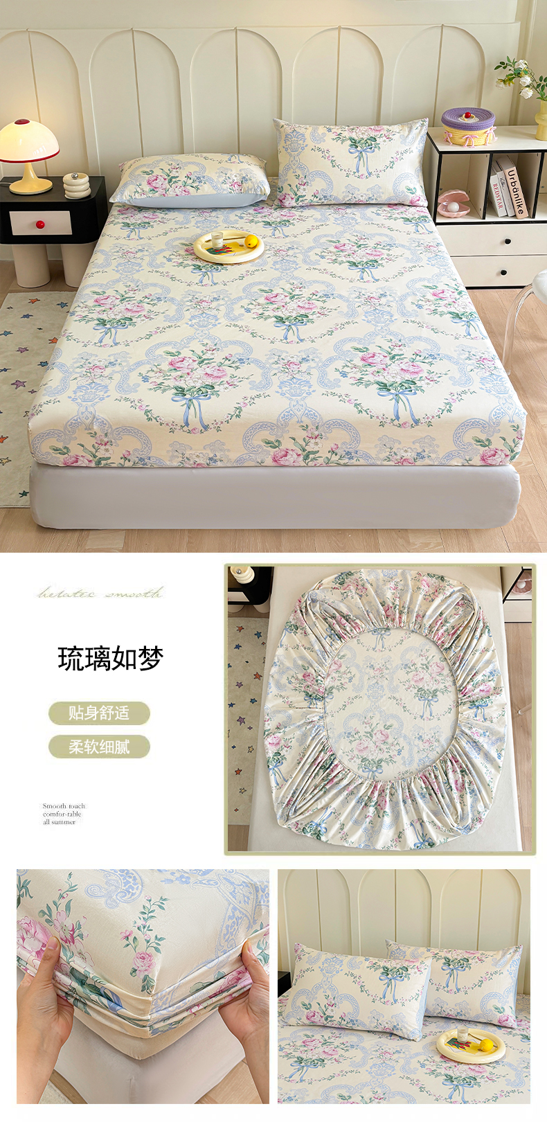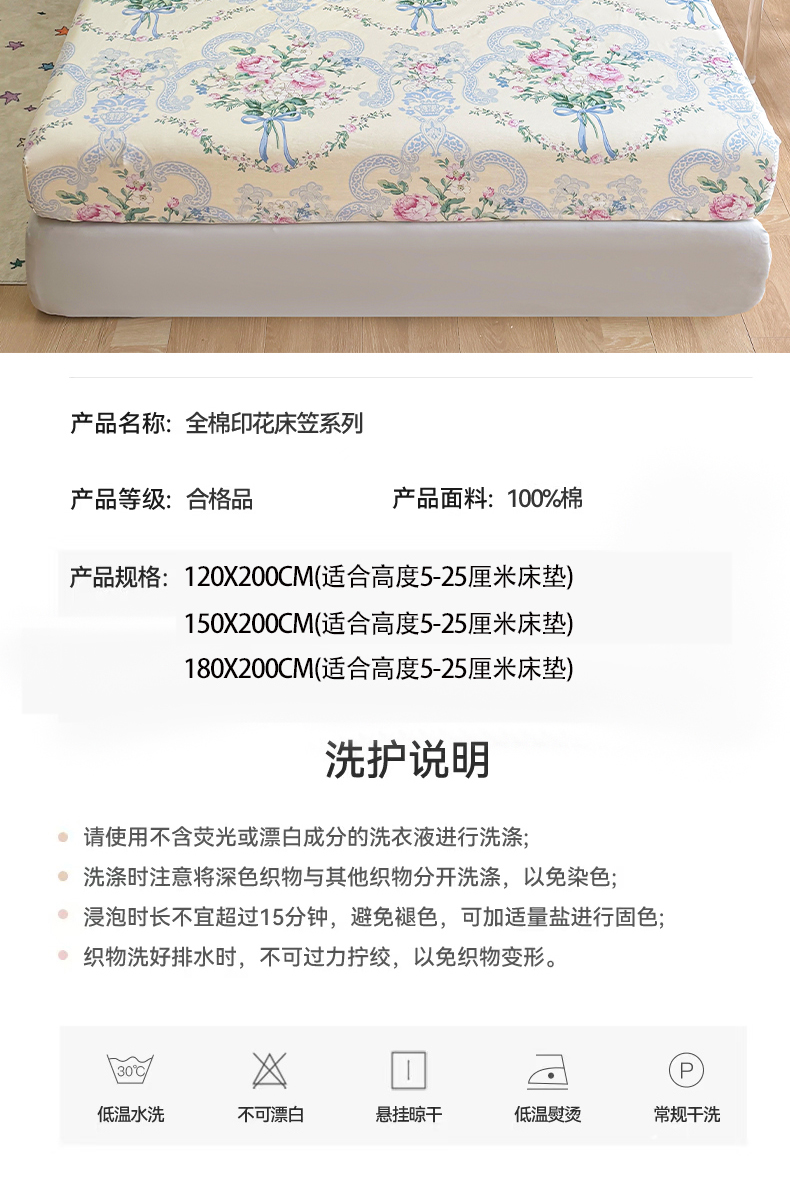 商品名称:2025新款全棉纯棉印花单床笠 床笠单件 琉璃如梦
