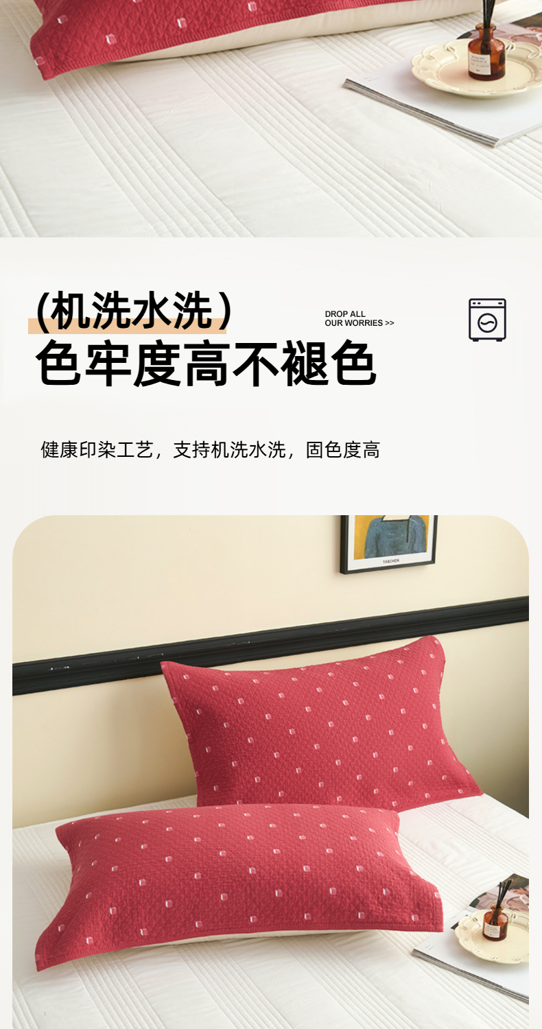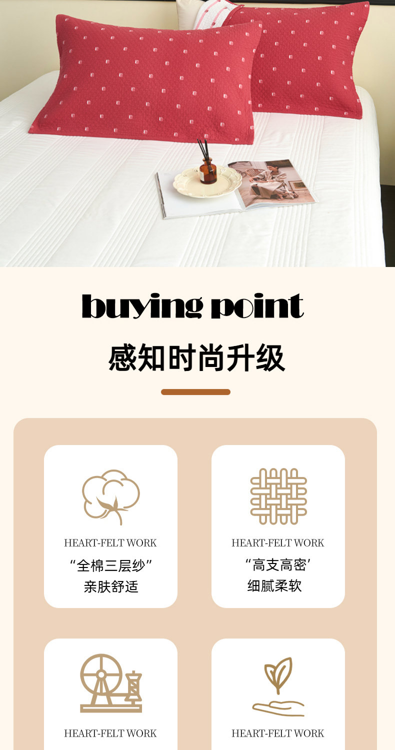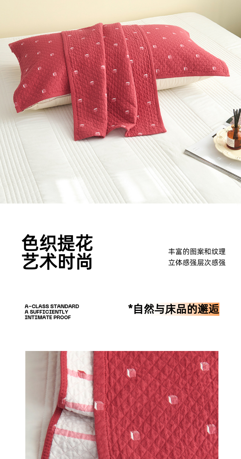悦然毛巾被 2025新款全棉纯棉三层纱水洗枕巾 立体格红