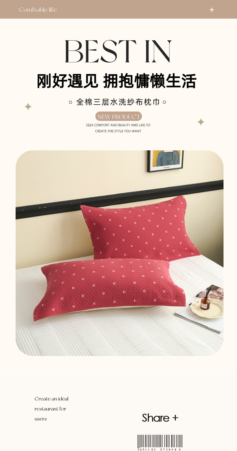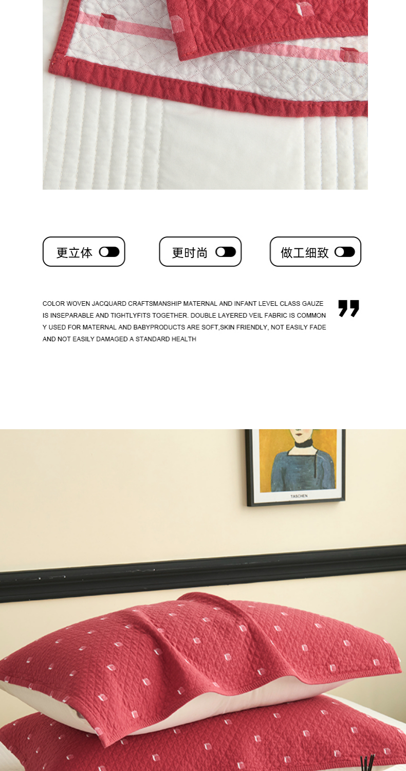 商品名称:悦然毛巾被 2025新款全棉纯棉三层纱水洗枕巾 立体格红