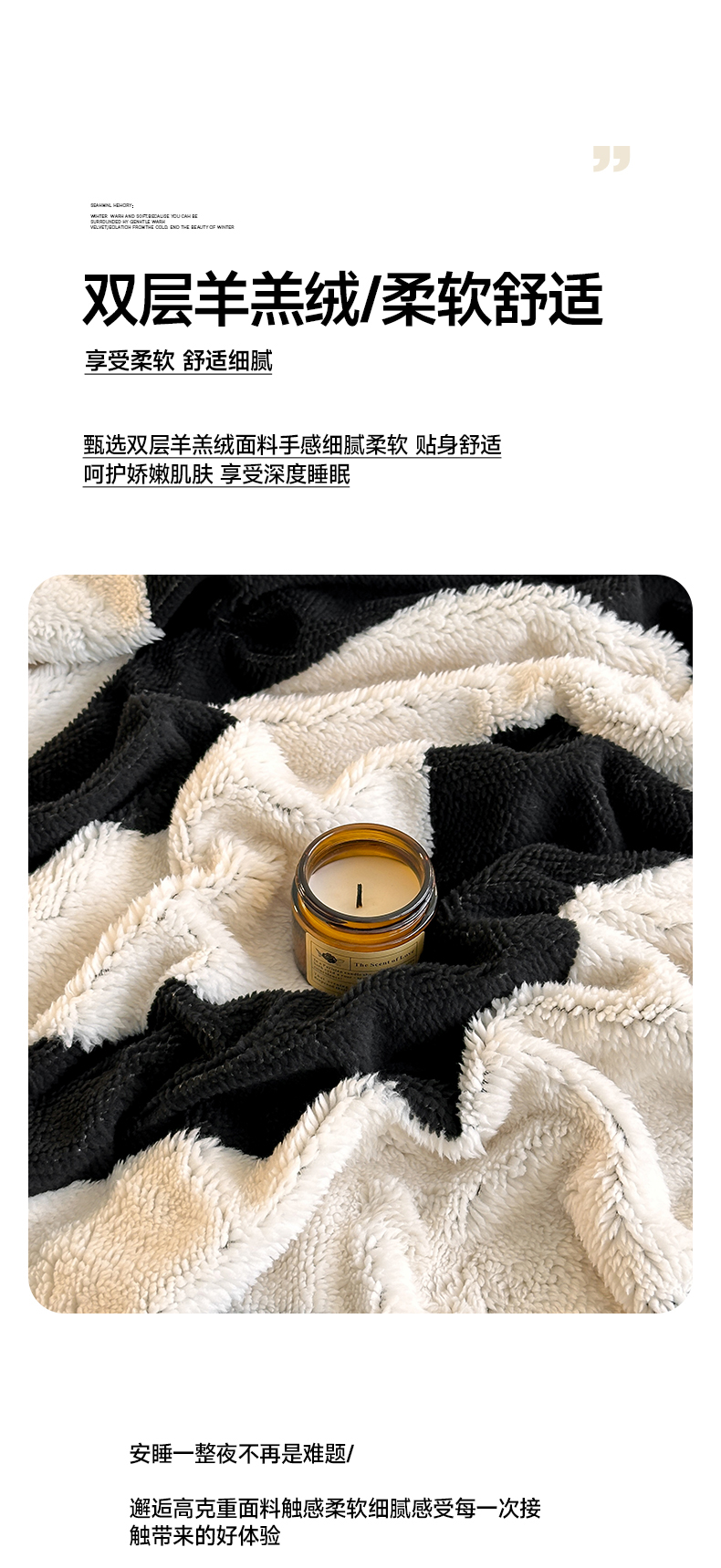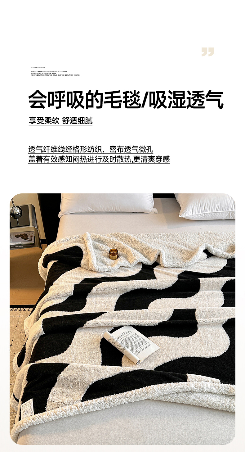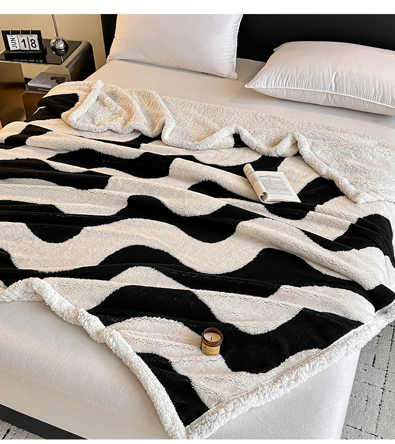 沐棉家居 2025新款双层提花羊羔绒毛毯毯子 波浪纹