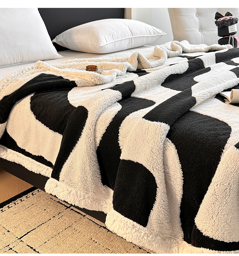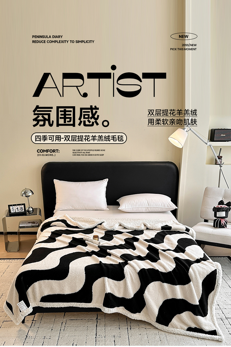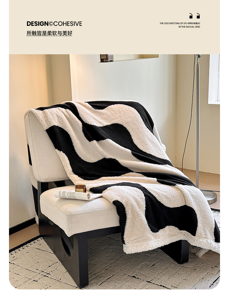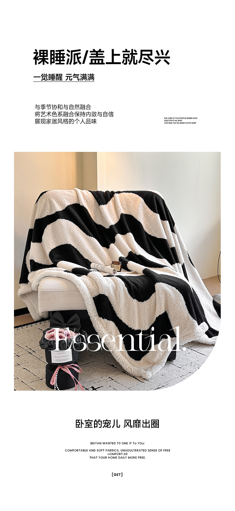 沐棉家居 2025新款双层提花羊羔绒毛毯毯子 波浪纹