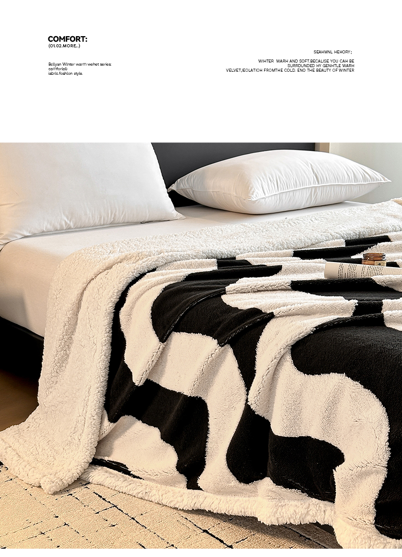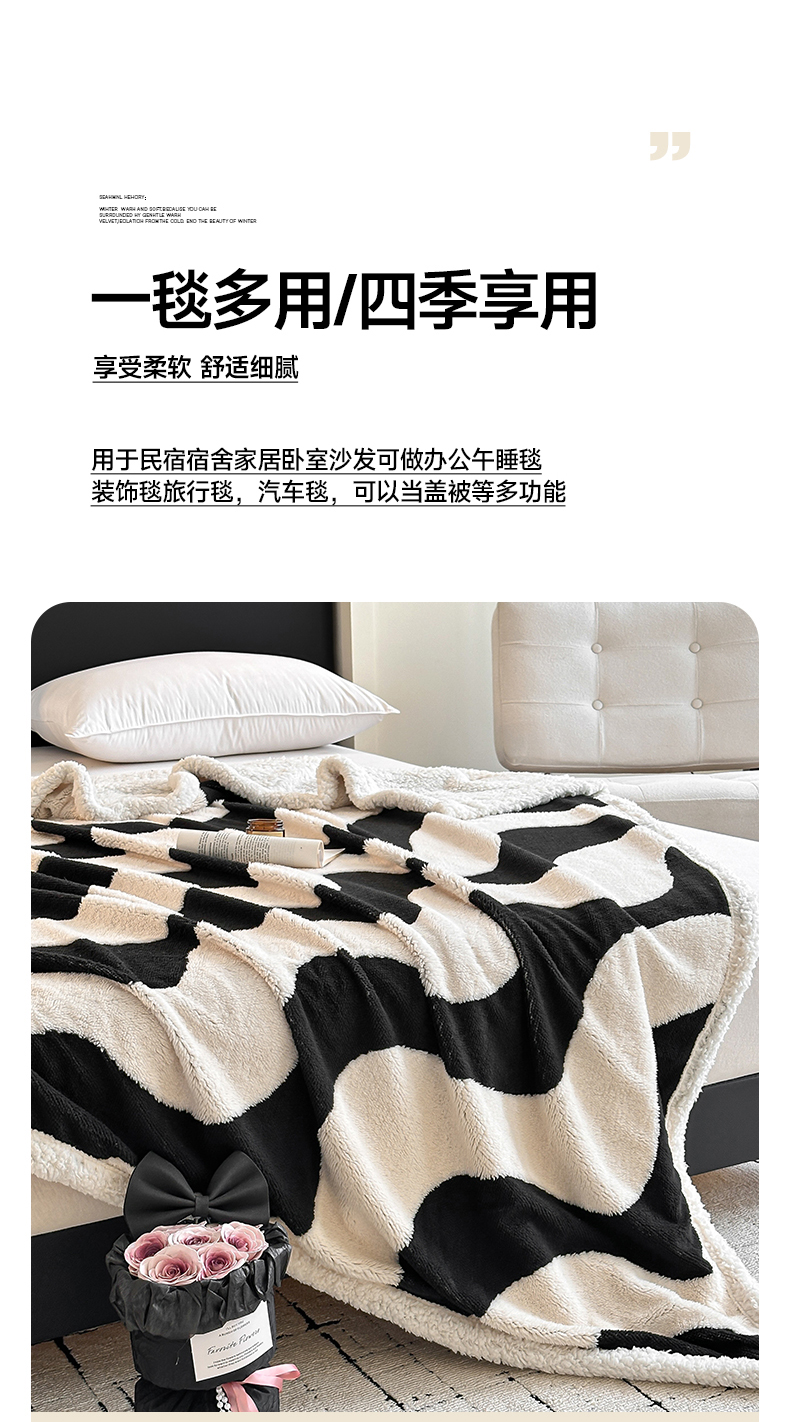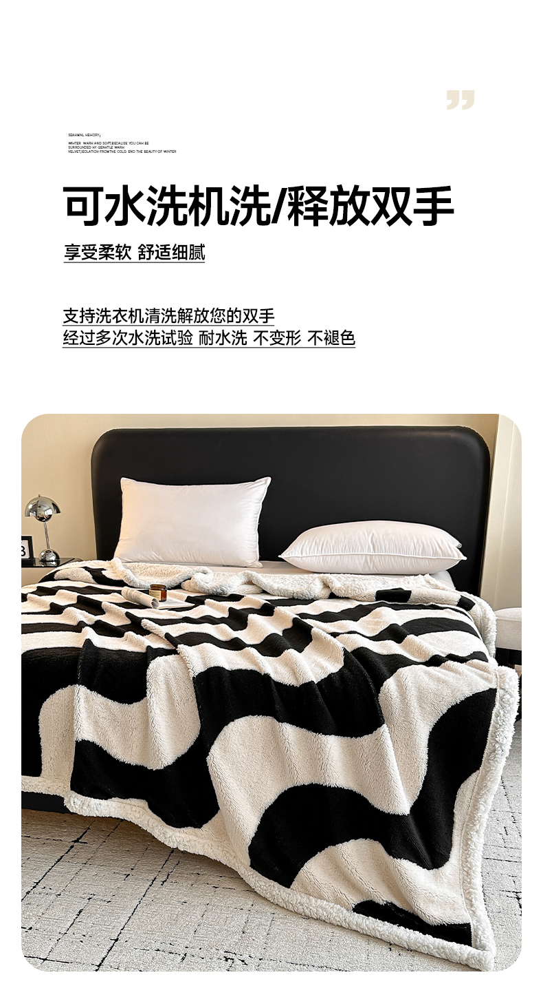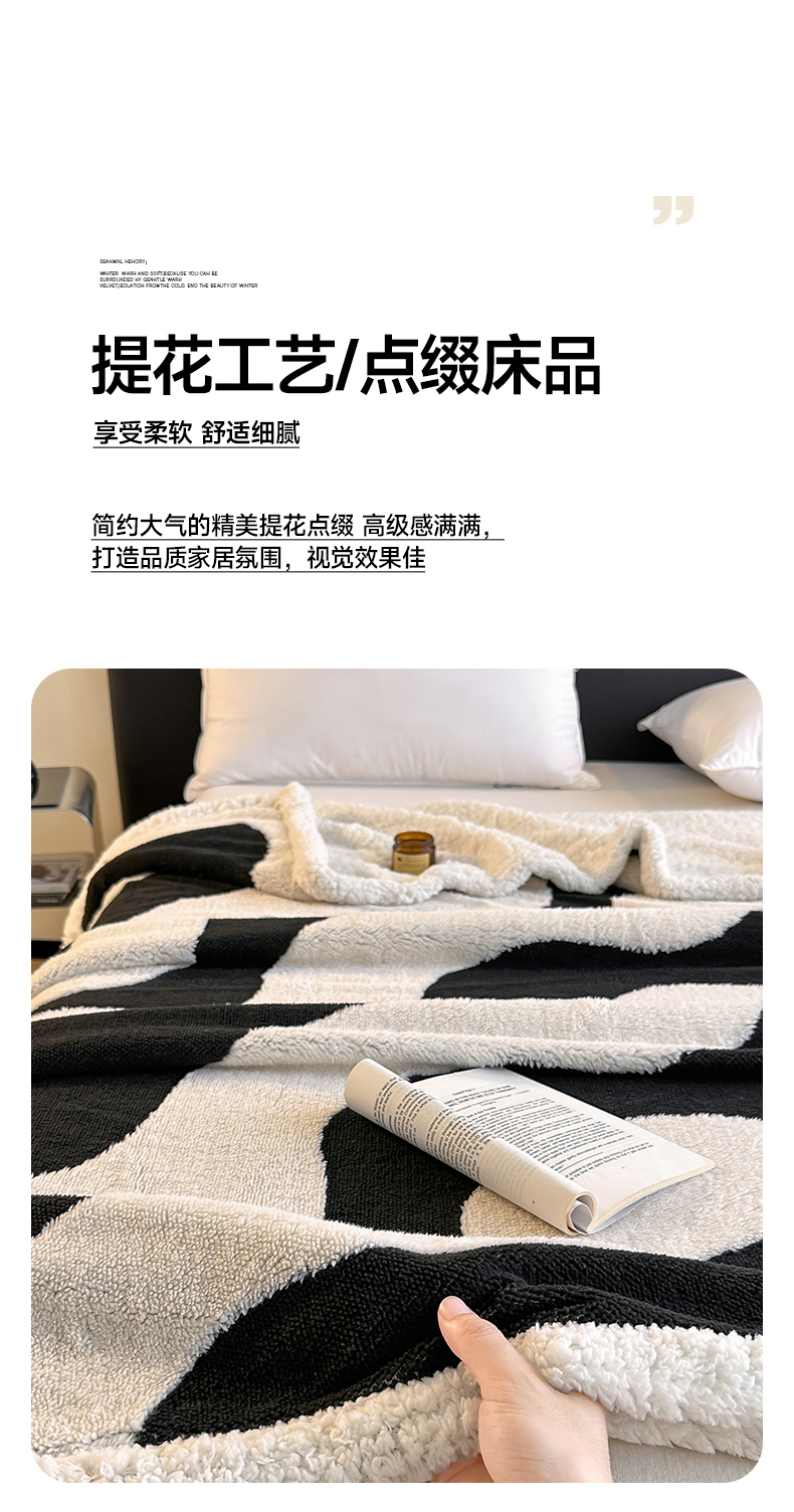 商品名称:沐棉家居 2025新款双层提花羊羔绒毛毯毯子 波浪纹
