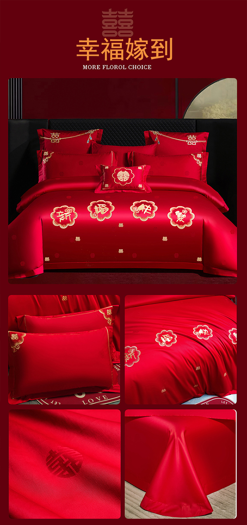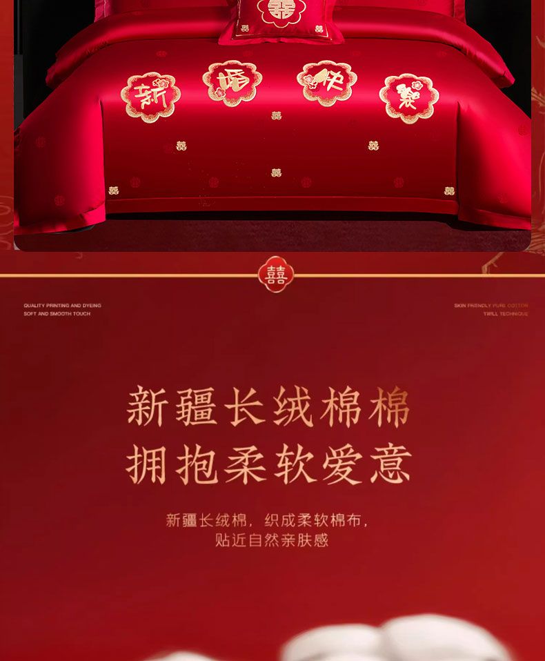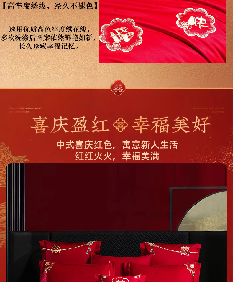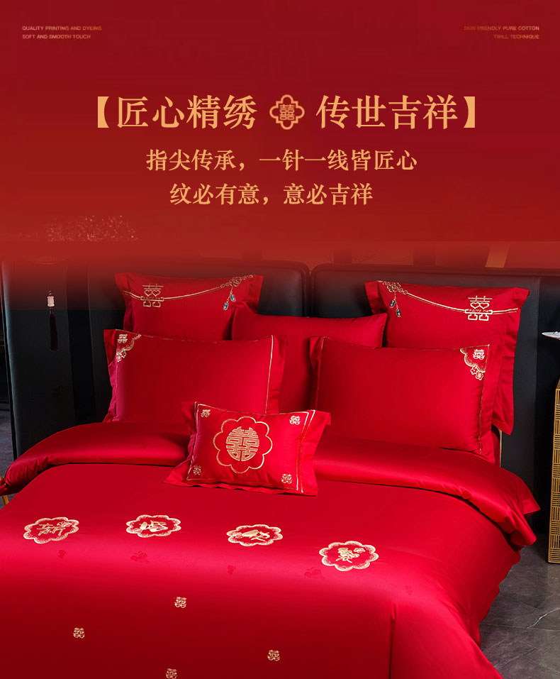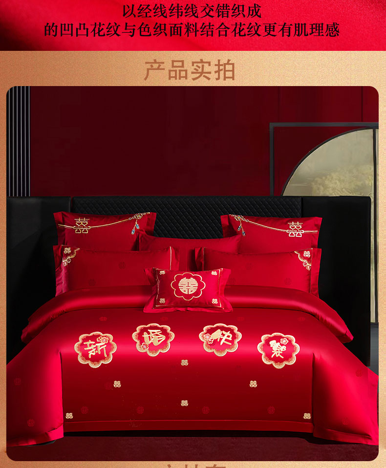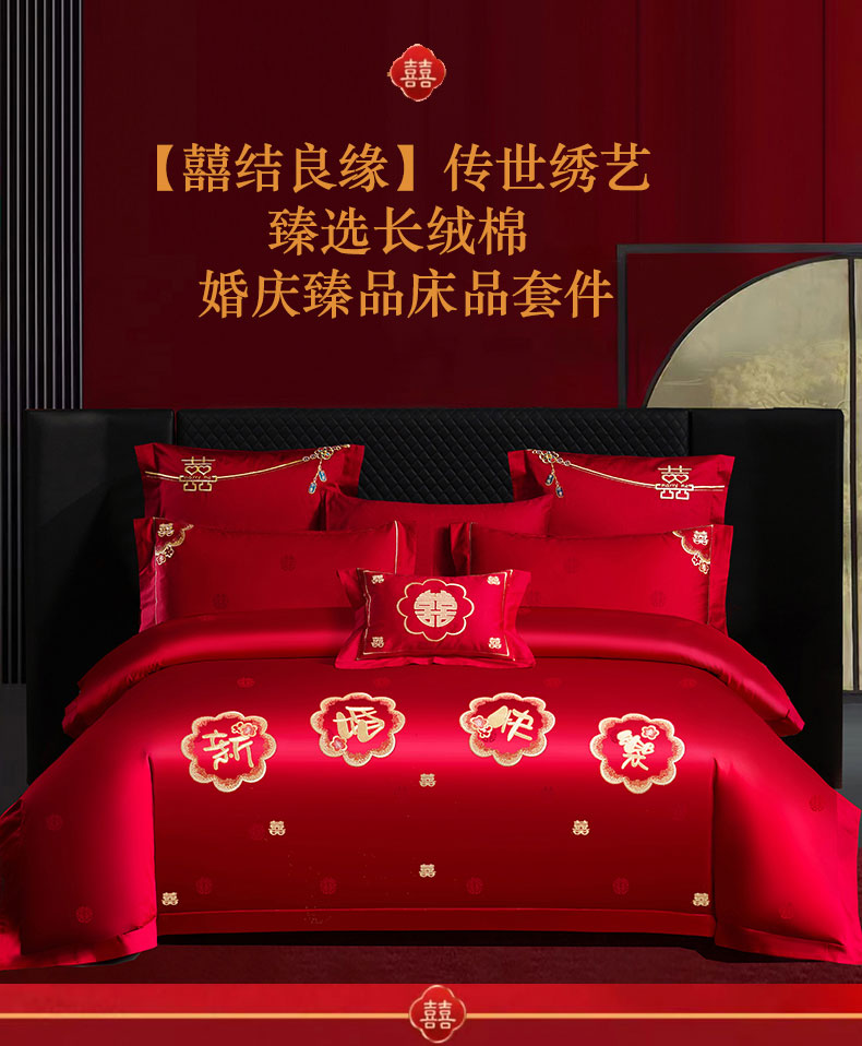 当前位置: 91家纺网 > 商品网购 > 床品套件 > 四件套 > 婚庆四件套 > 蒂爵 2025新款婚庆长绒棉时尚小红书爆款刺绣婚庆四件套多件套-提花款 幸福嫁到