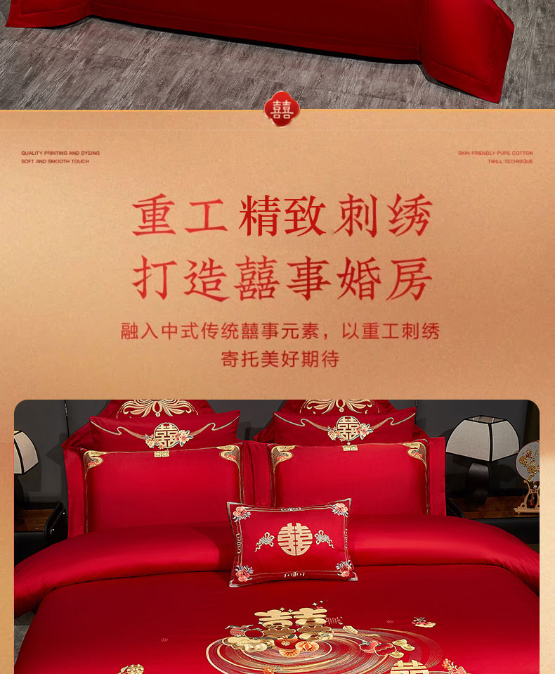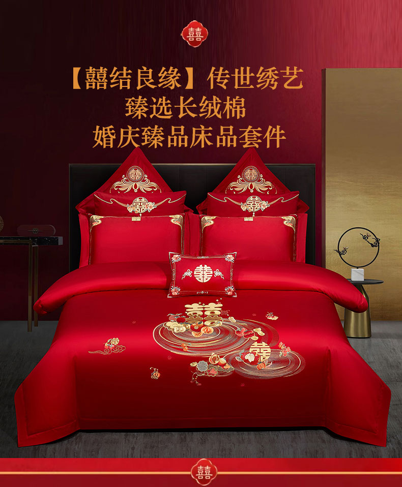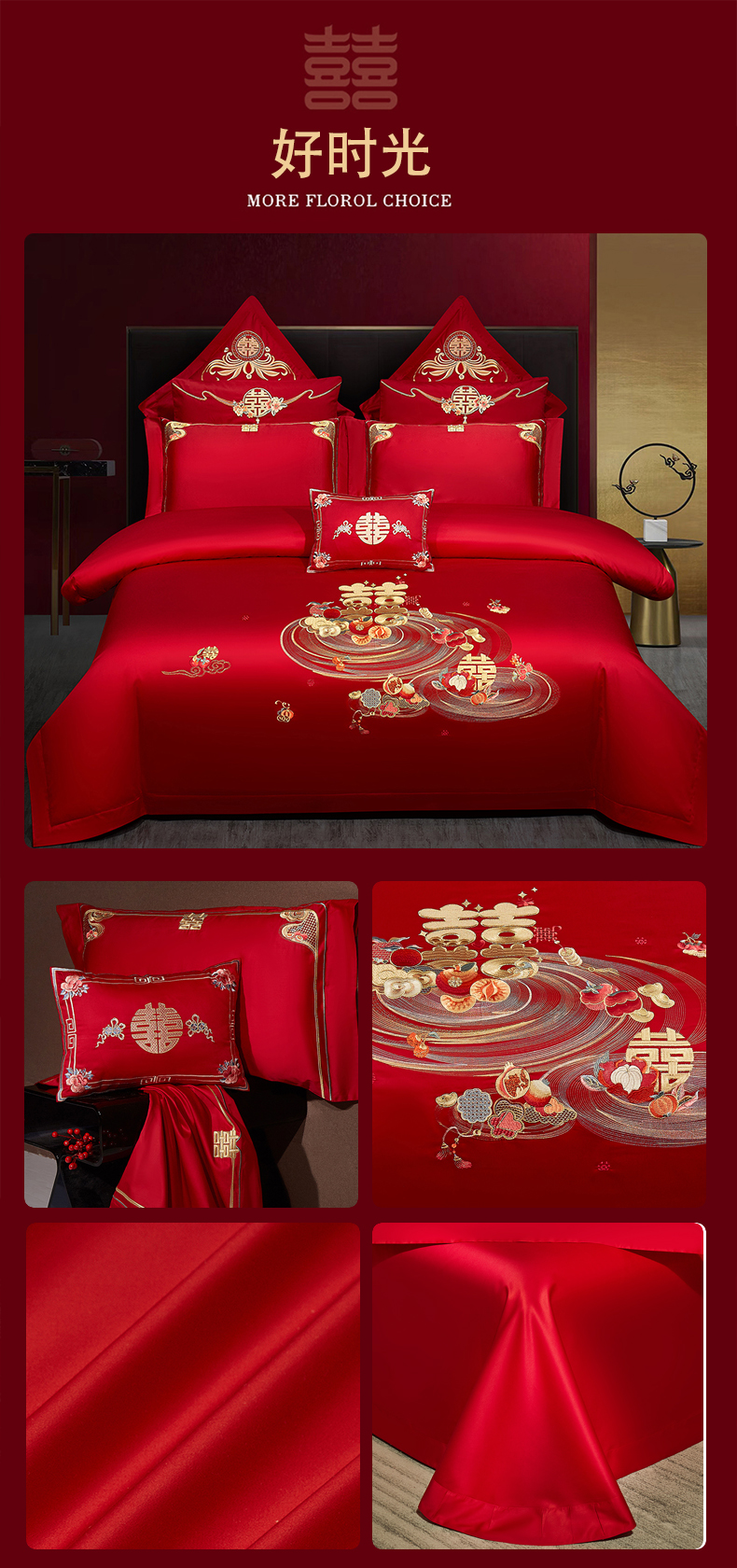 当前位置: 91家纺网 > 商品网购 > 床品套件 > 四件套 > 婚庆四件套 > 蒂爵 2025新款婚庆长绒棉时尚小红书爆款刺绣婚庆四件套多件套-无提花款 好时光