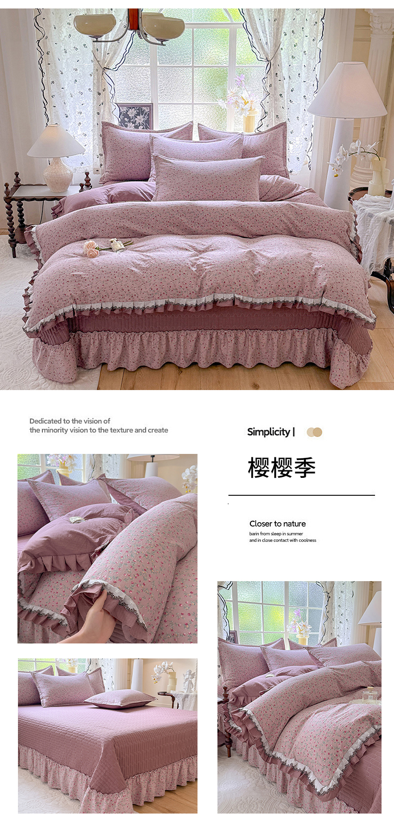 商品名称:韩约家纺 2025新款1双层刺绣花边法式床盖款棉麻四件套(全网控价:不低于1.5m139,1.8m144,2.0m149,2.0加大154) 樱樱季