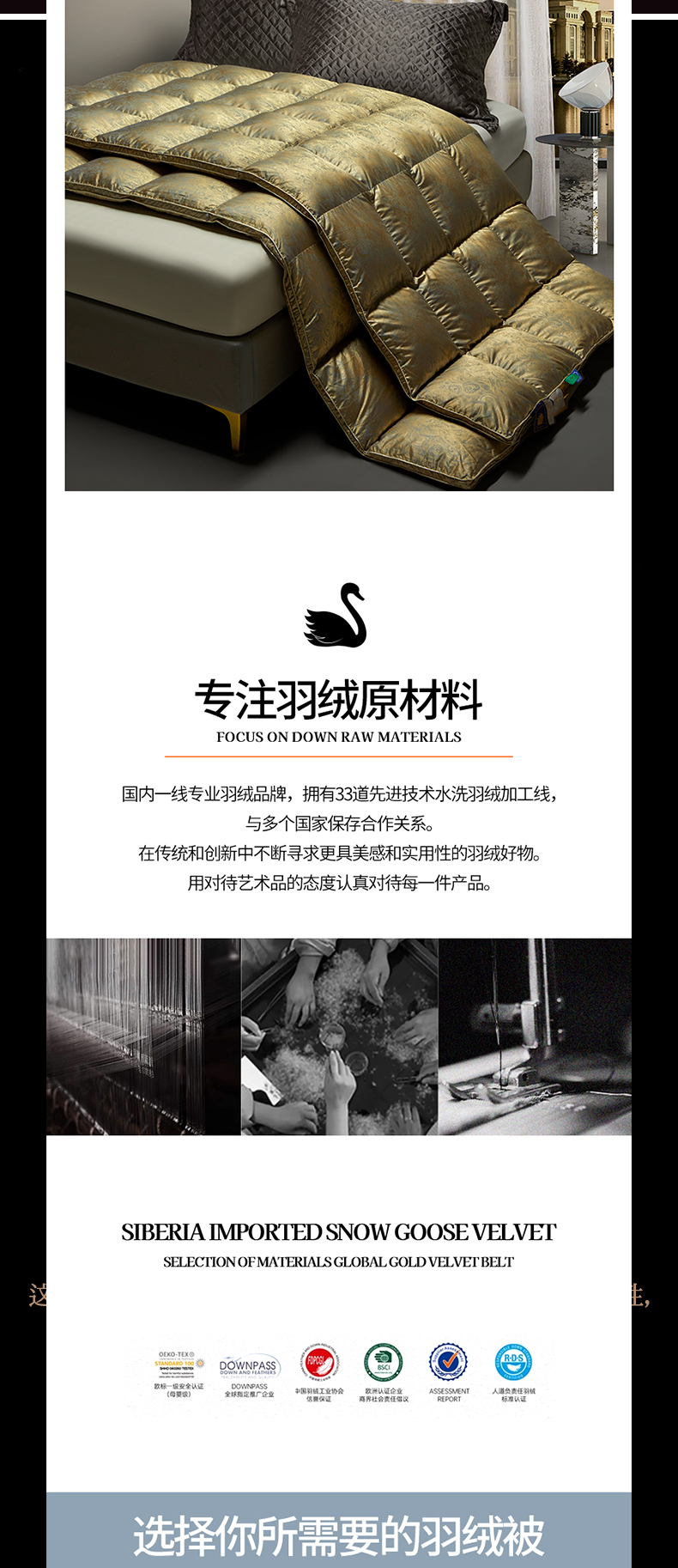 • 91家纺网 家纺一手货源 找家纺 (总)织梦人羽绒工厂店 2025新款高端100支长绒棉德国进口软银丝全棉95鹅绒羽绒被,凤翎-黑金