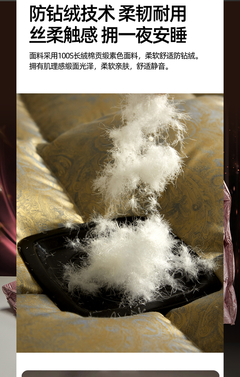 • 91家纺网 家纺一手货源 找家纺 (总)织梦人羽绒工厂店 2025新款高端100支长绒棉德国进口软银丝全棉95鹅绒羽绒被,凤翎-黑金