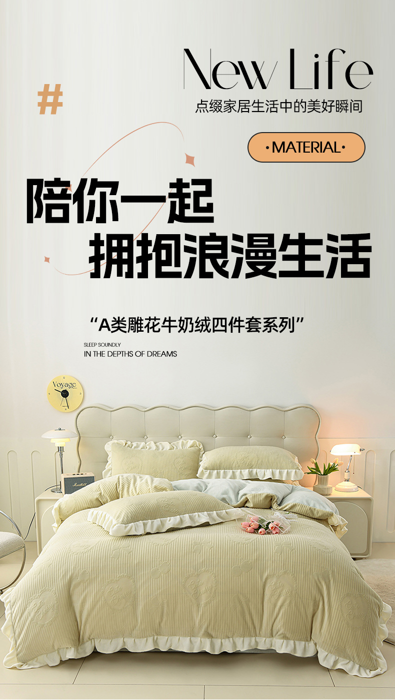 (总)千嘻汇家纺 2025新款8.5斤韩版雕花牛奶绒四件套,甜蜜蜜粉色,甜蜜蜜蓝色,甜蜜蜜米色,甜蜜蜜青色,甜蜜蜜紫色