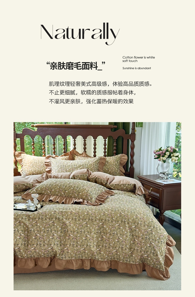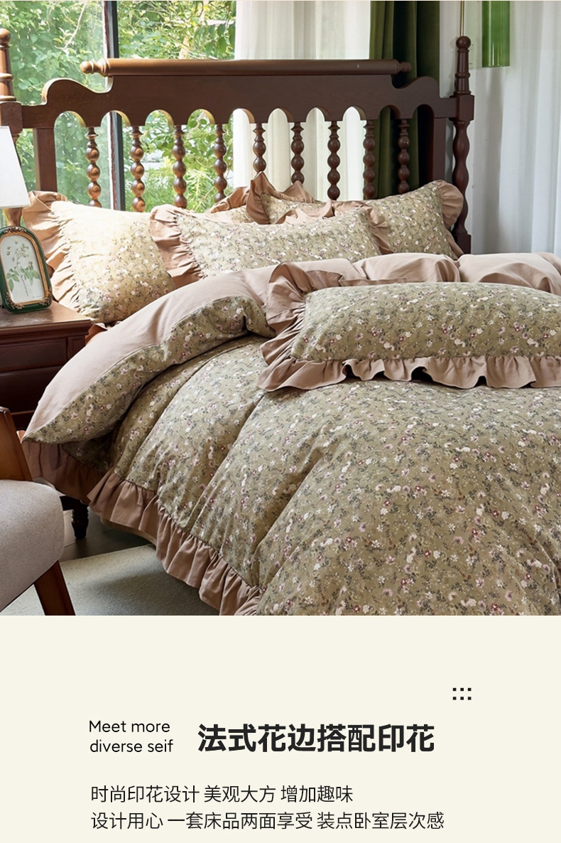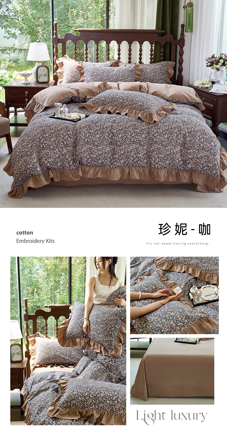 当前位置: 91家纺网 > 商品网购 > 床品套件 > 四件套 > 普通磨毛四件套 > 未来家居 2025秋冬新款全棉法式花边款磨毛四件套 茵然-咖