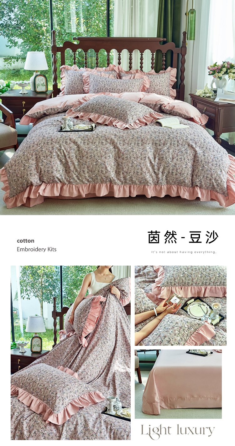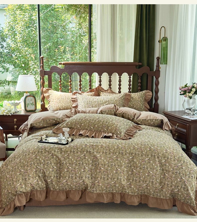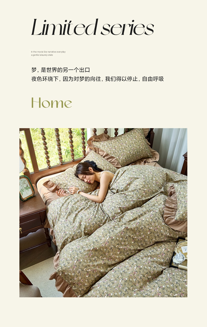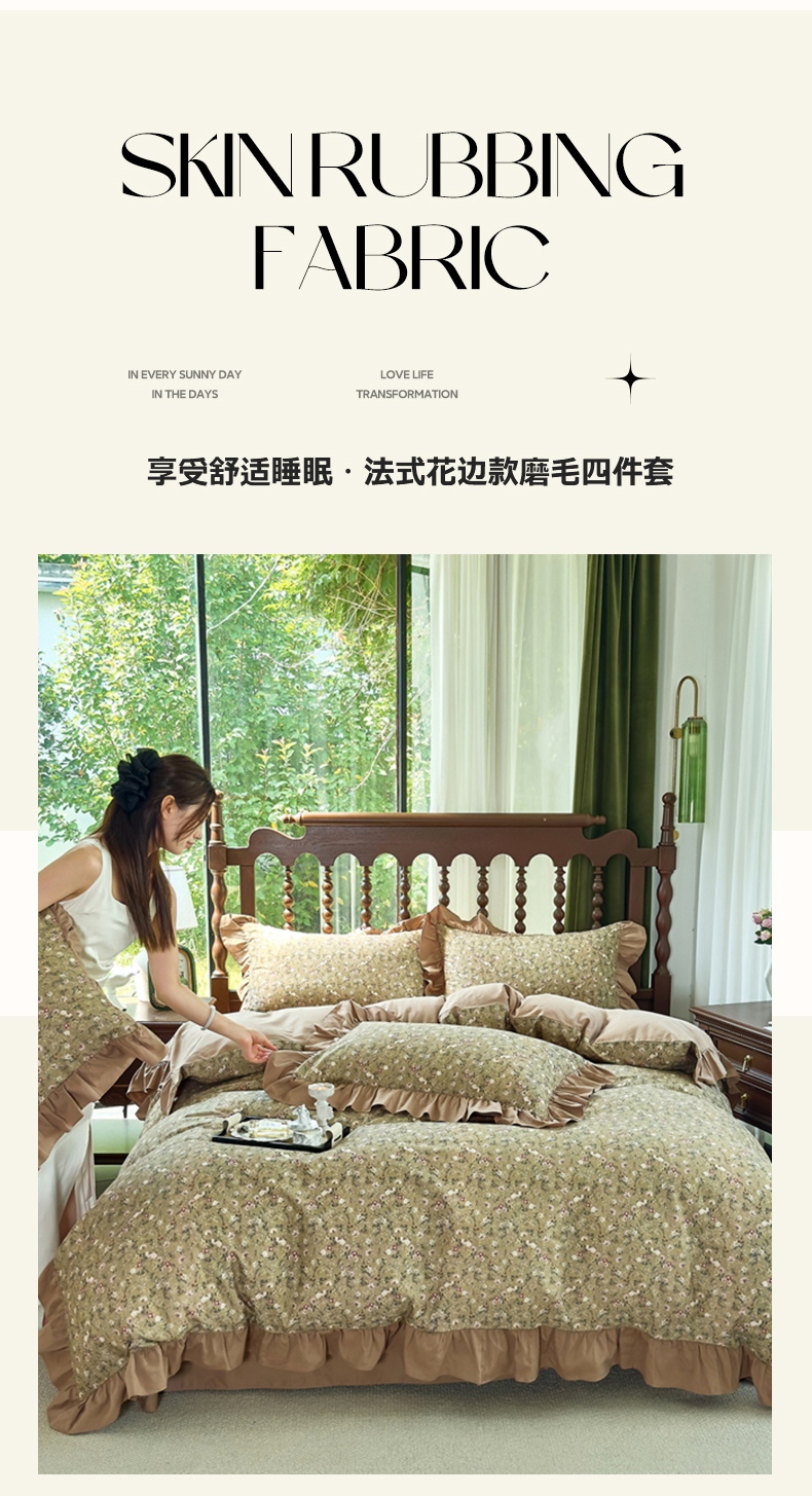 当前位置: 91家纺网 > 商品网购 > 床品套件 > 四件套 > 普通磨毛四件套 > 未来家居 2025秋冬新款全棉法式花边款磨毛四件套 茵然-咖
