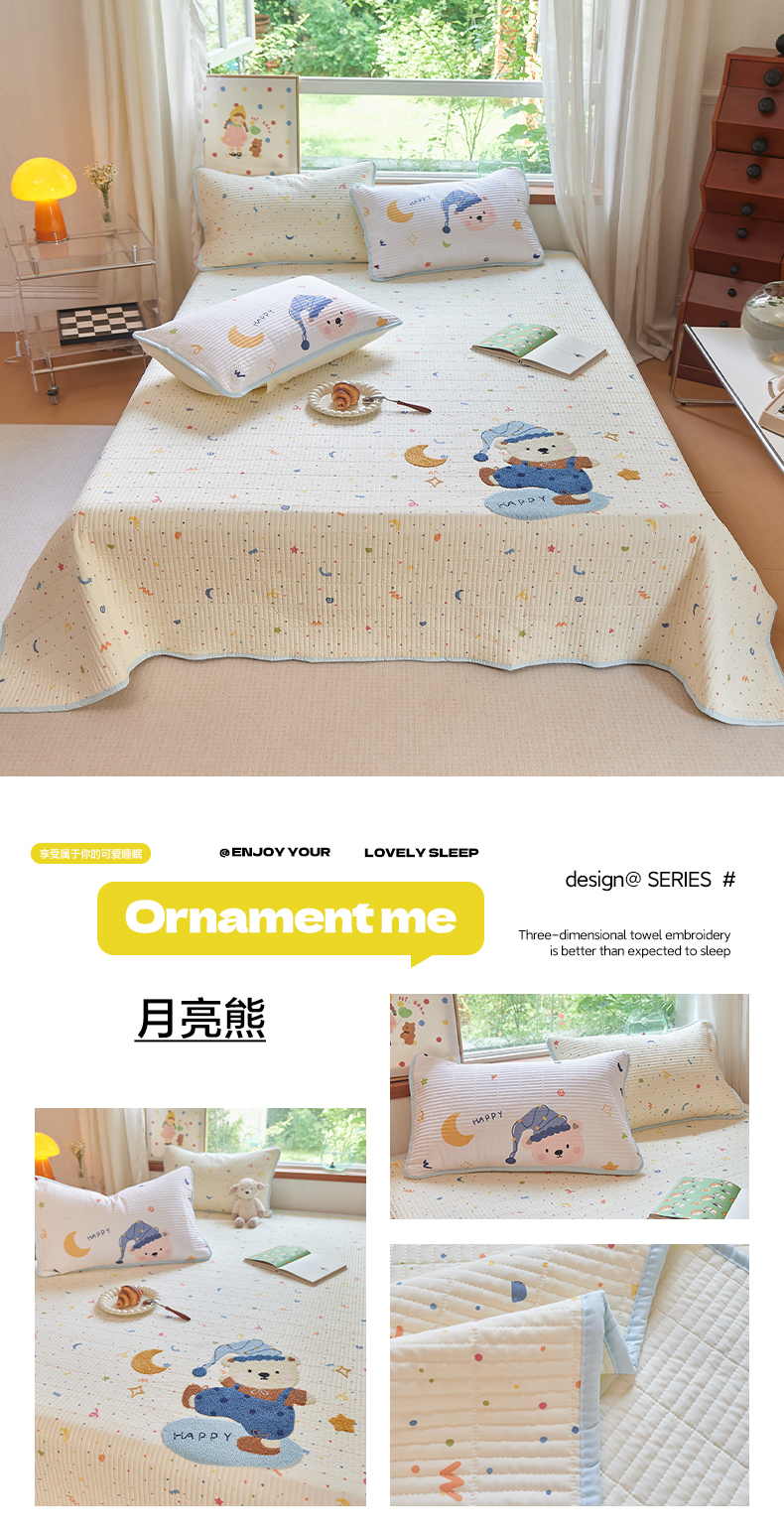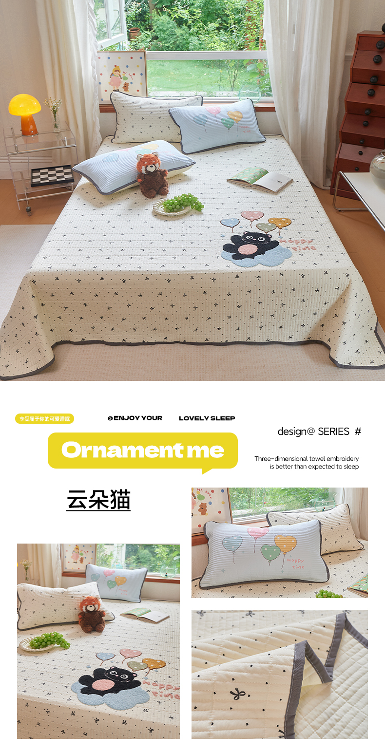 • 91家纺网 家纺一手货源 找家纺 (总)鑫喜莱家纺 2026新款全棉纯棉原创毛巾绣床盖三件套单床盖软床垫,滑板小熊仔,酷酷的小熊,面包小狗,南瓜小兔,胖熊的星星,苹果小狗,线团小黑猫,星星人,组合图仅供展示-不可下单