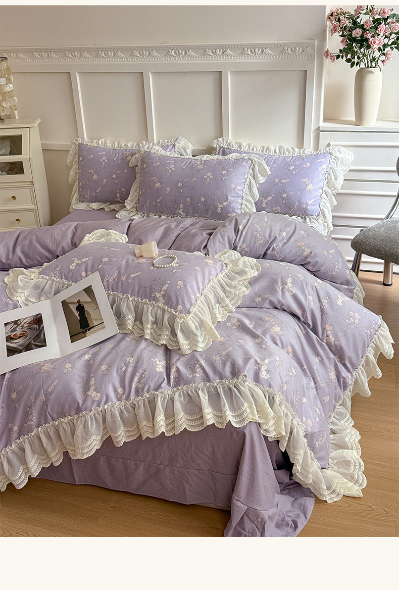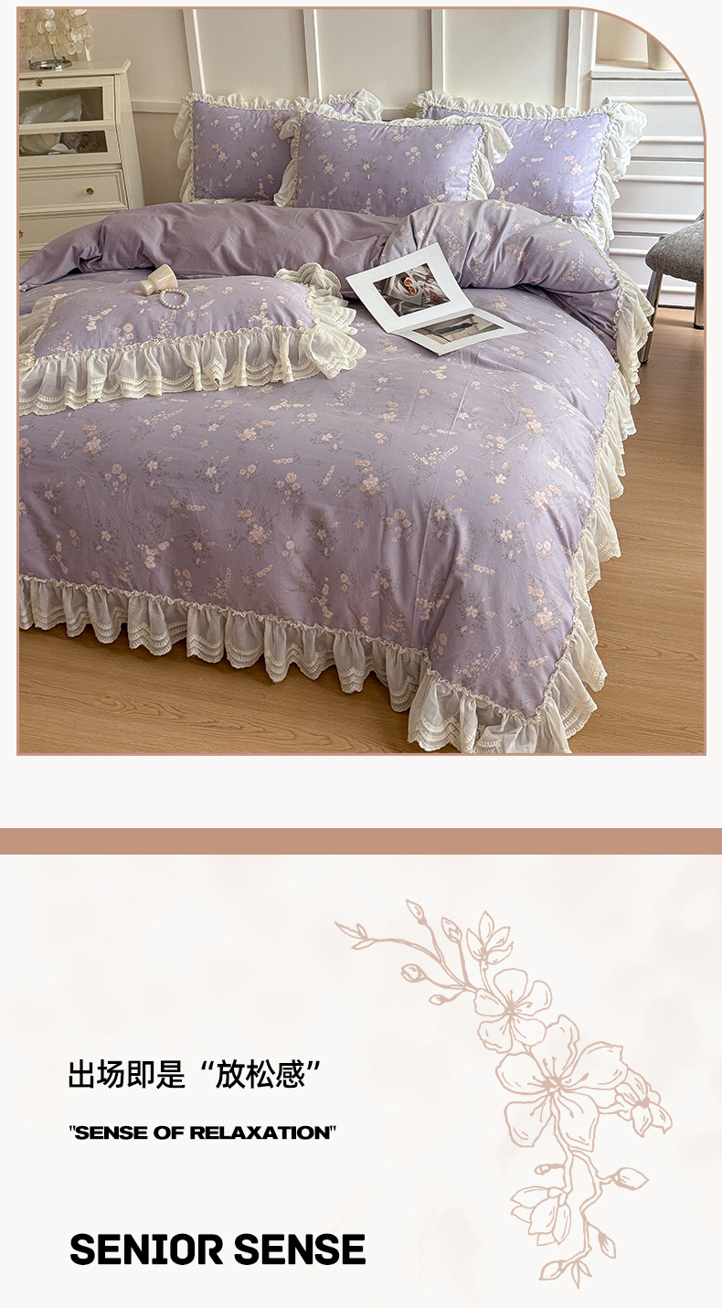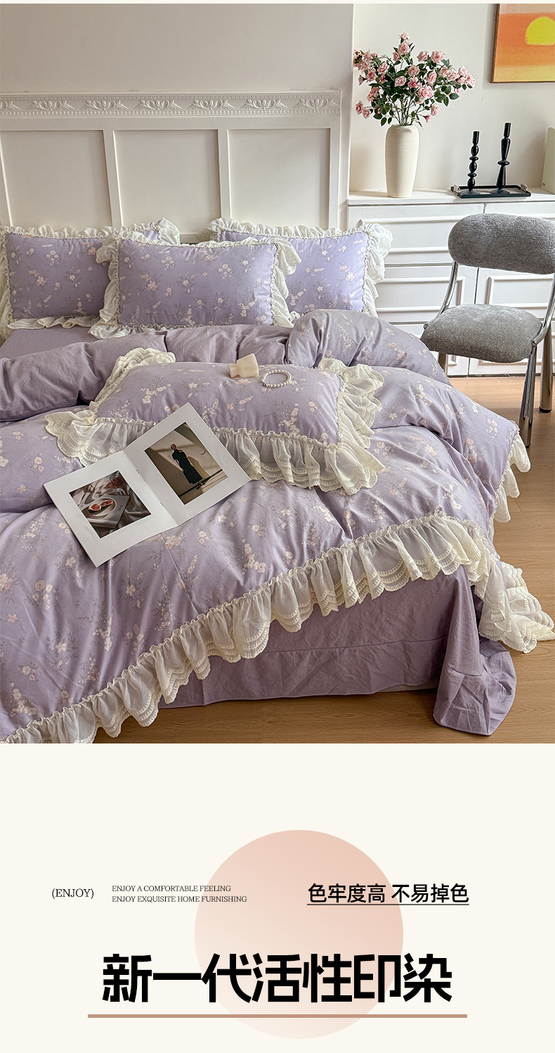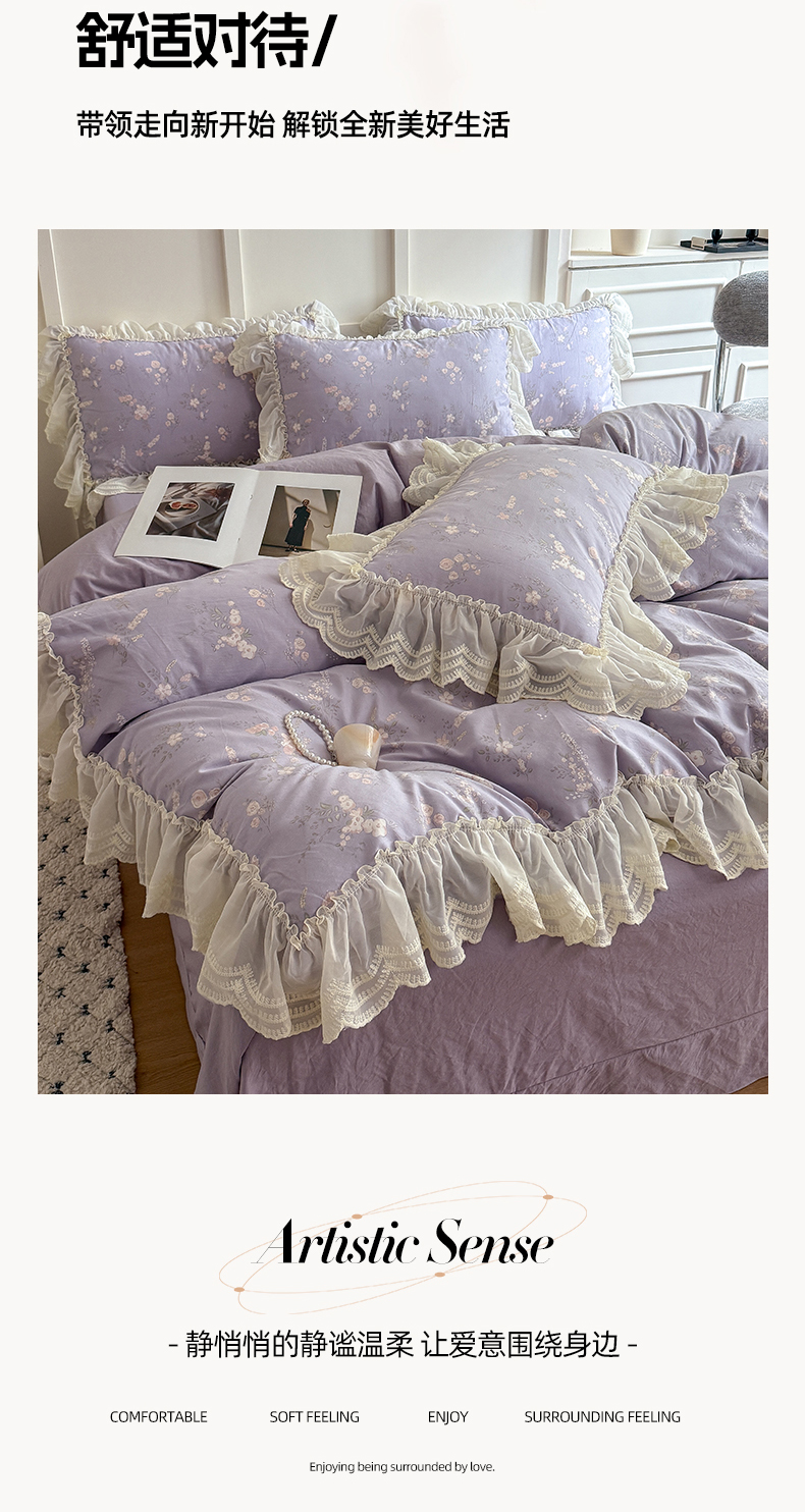 商品名称:吾欢心 2025新款韩版蕾丝花边加厚原棉四件套 科莫花园绿