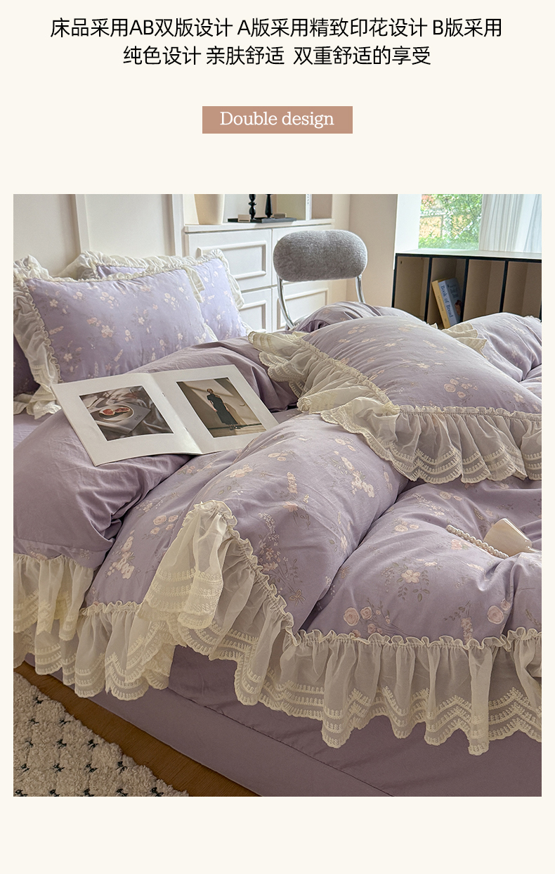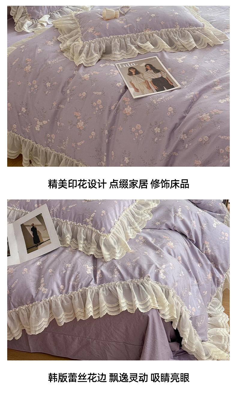 (总)吾欢心 2026春夏新款古法水洗仿棉韩版双层花边四件套,KT猫,斑马,彩色蝴蝶结,卡通小狗,可爱星星人,萌宠宝贝,秘境花园,奶萌小狗,田园趣味,汐颜,小草莓,樱桃派