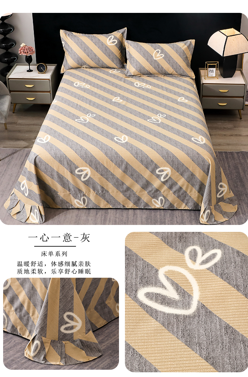 商品名称:馨雅家纺 2025新款全棉纯棉磨毛系列床单单品床单单件单床单 一心一意-灰