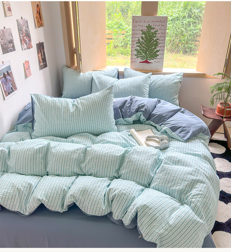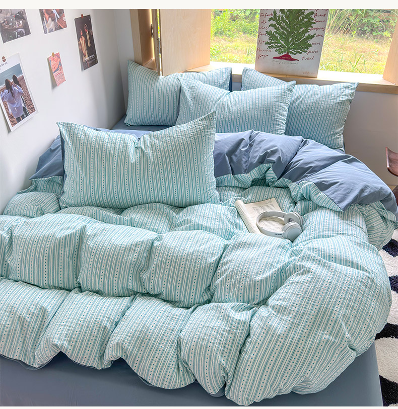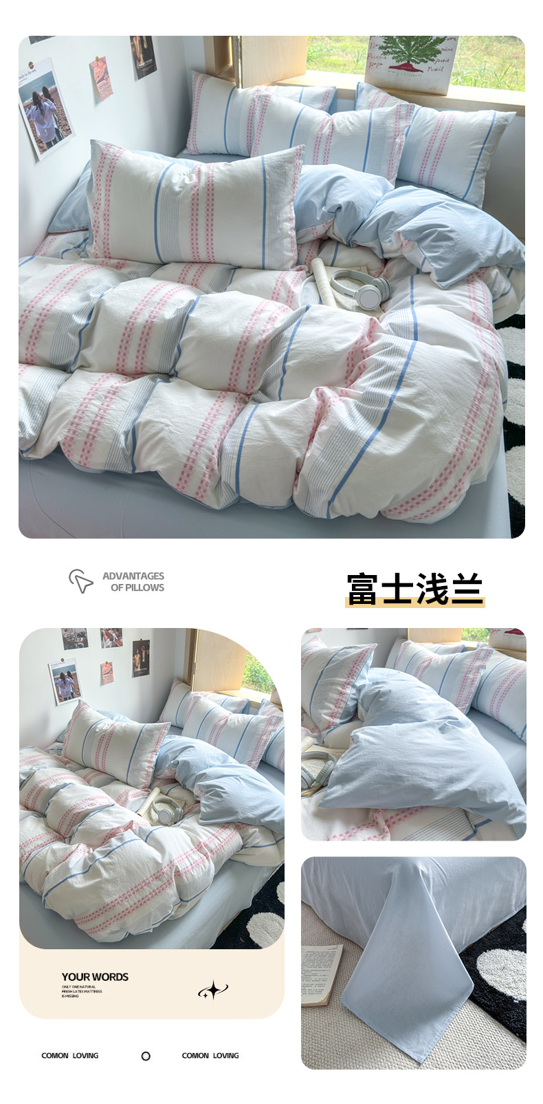 当前位置: 91家纺网 > 商品网购 > 床品套件 > 四件套 > 色织四件套 > 千朵 2025新款全棉纯棉色织提花水洗棉四件套 富士系列 富士浅兰